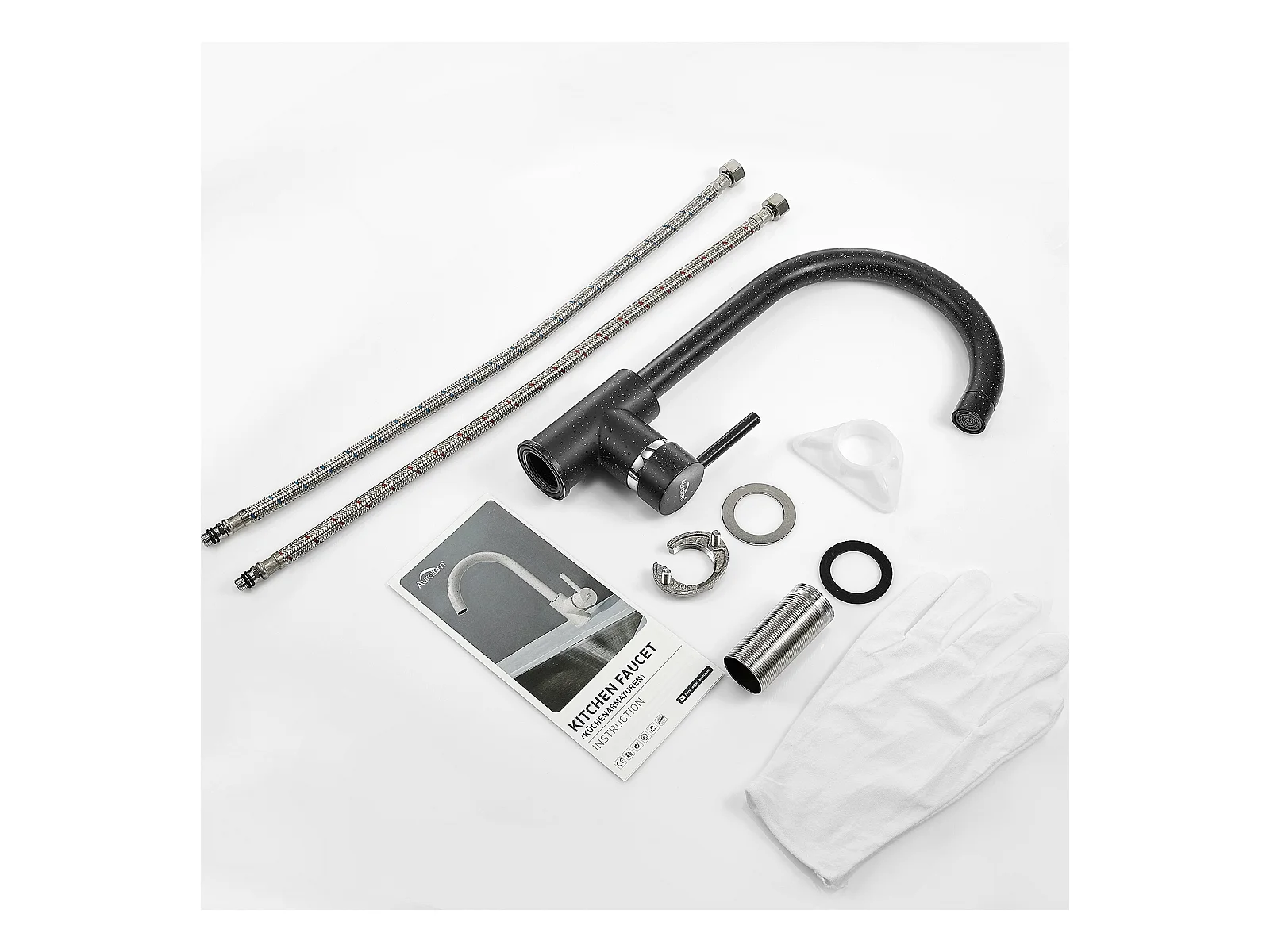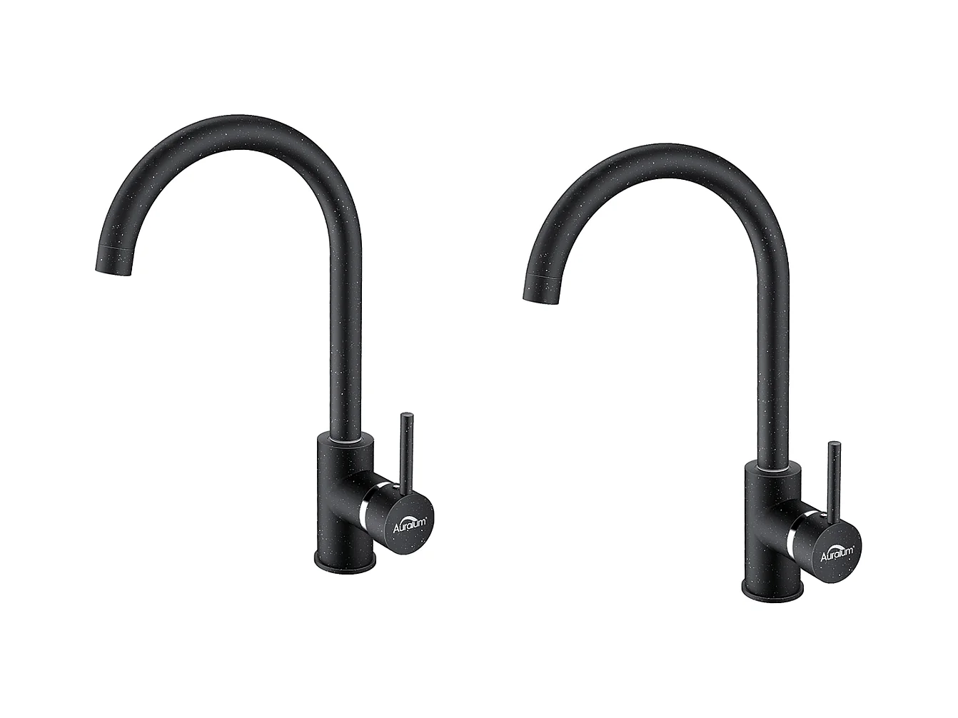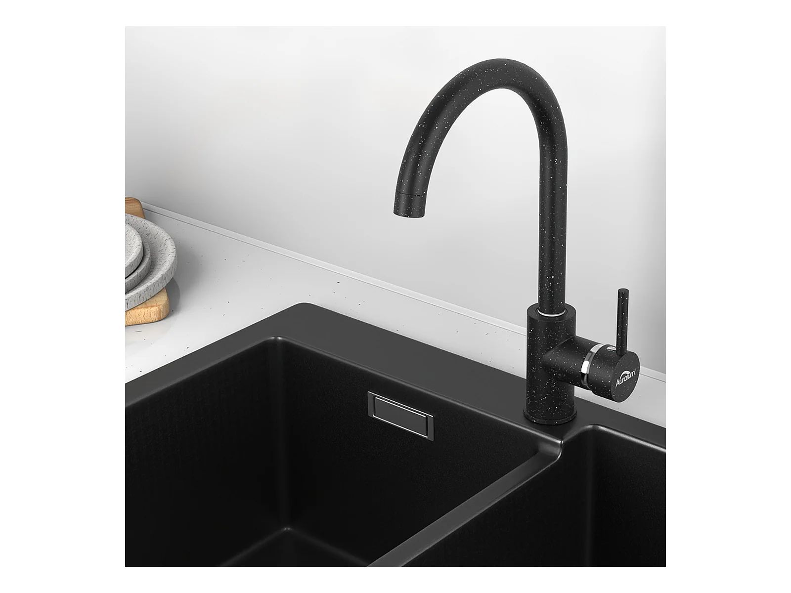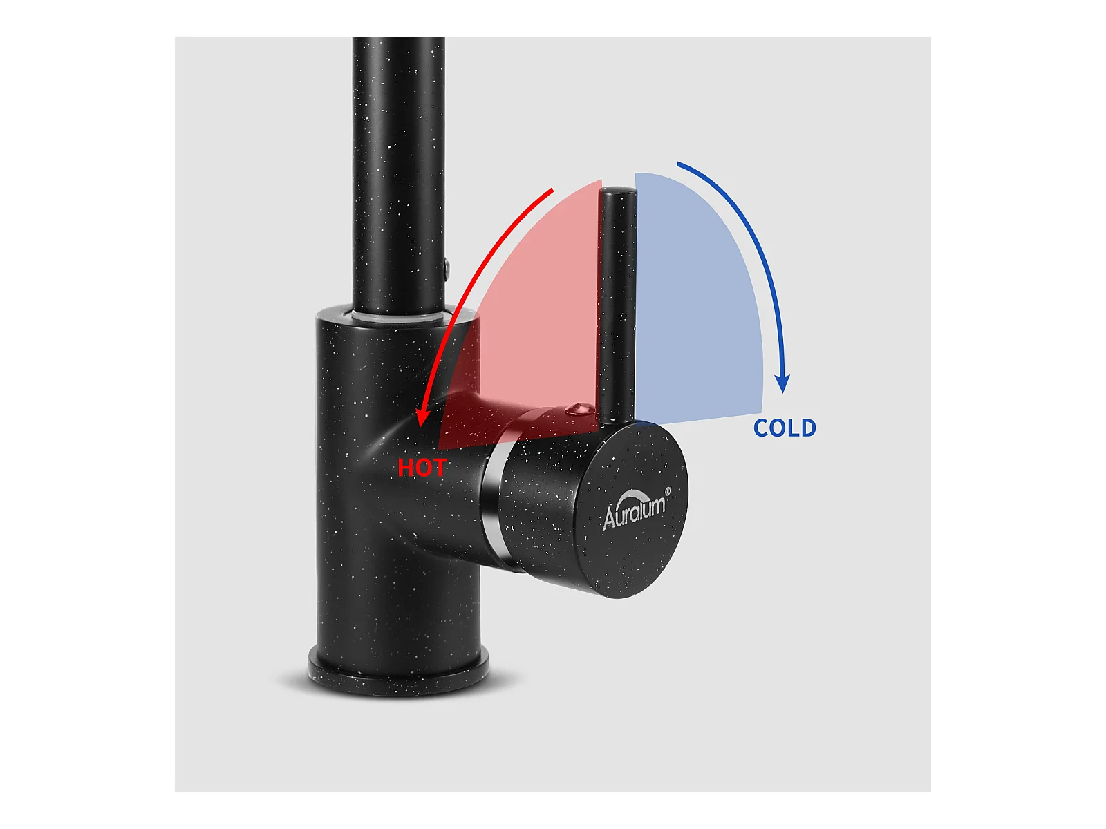 2-teiliger Küchenhahn, 360 ° drehbar, Spültisch-Mischbatterie, heißes und kaltes Wasser, Messing-Küchenhahn mit abnehmbarem Luftsprudler, Graphitschwarz, EU-Modell
