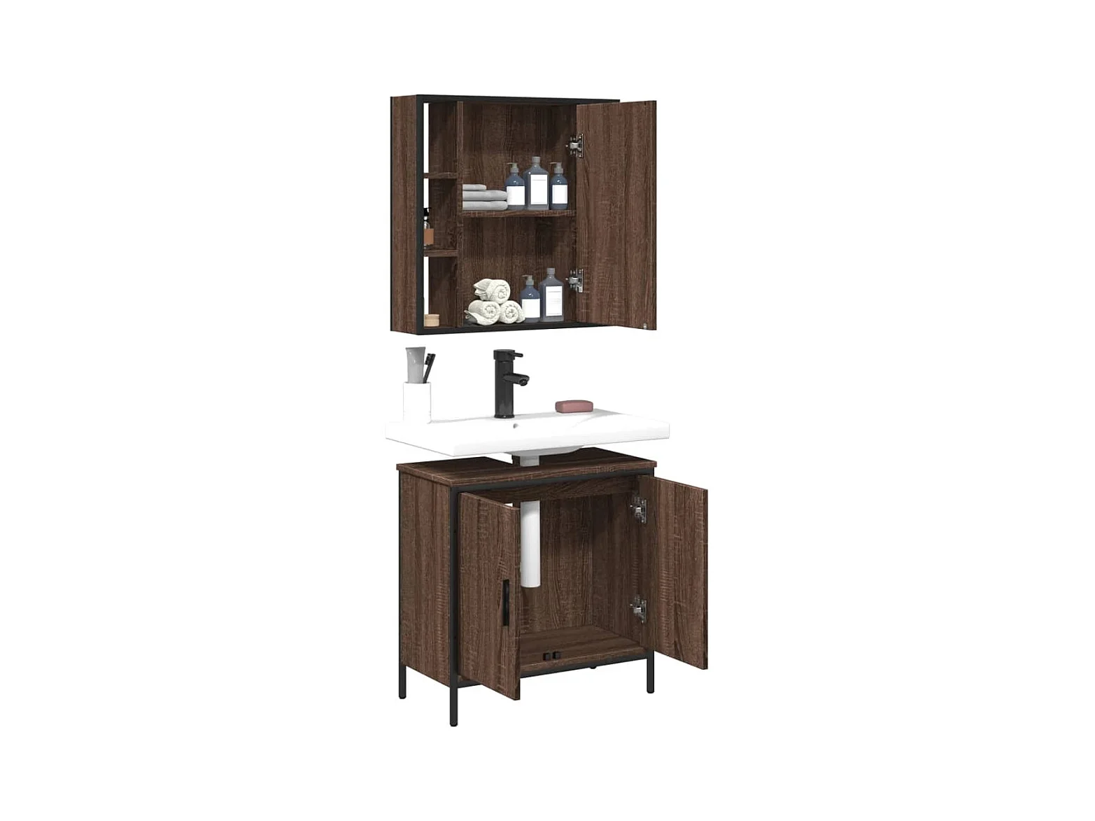2-tlg. Badmöbel-Set Braun Eichen-Optik Holzwerkstoff