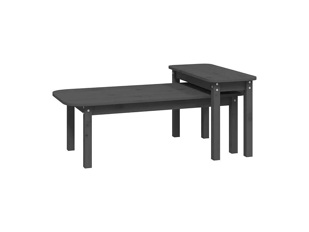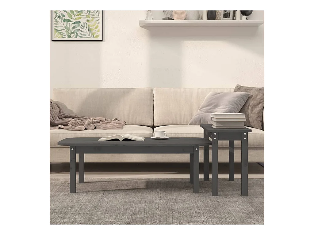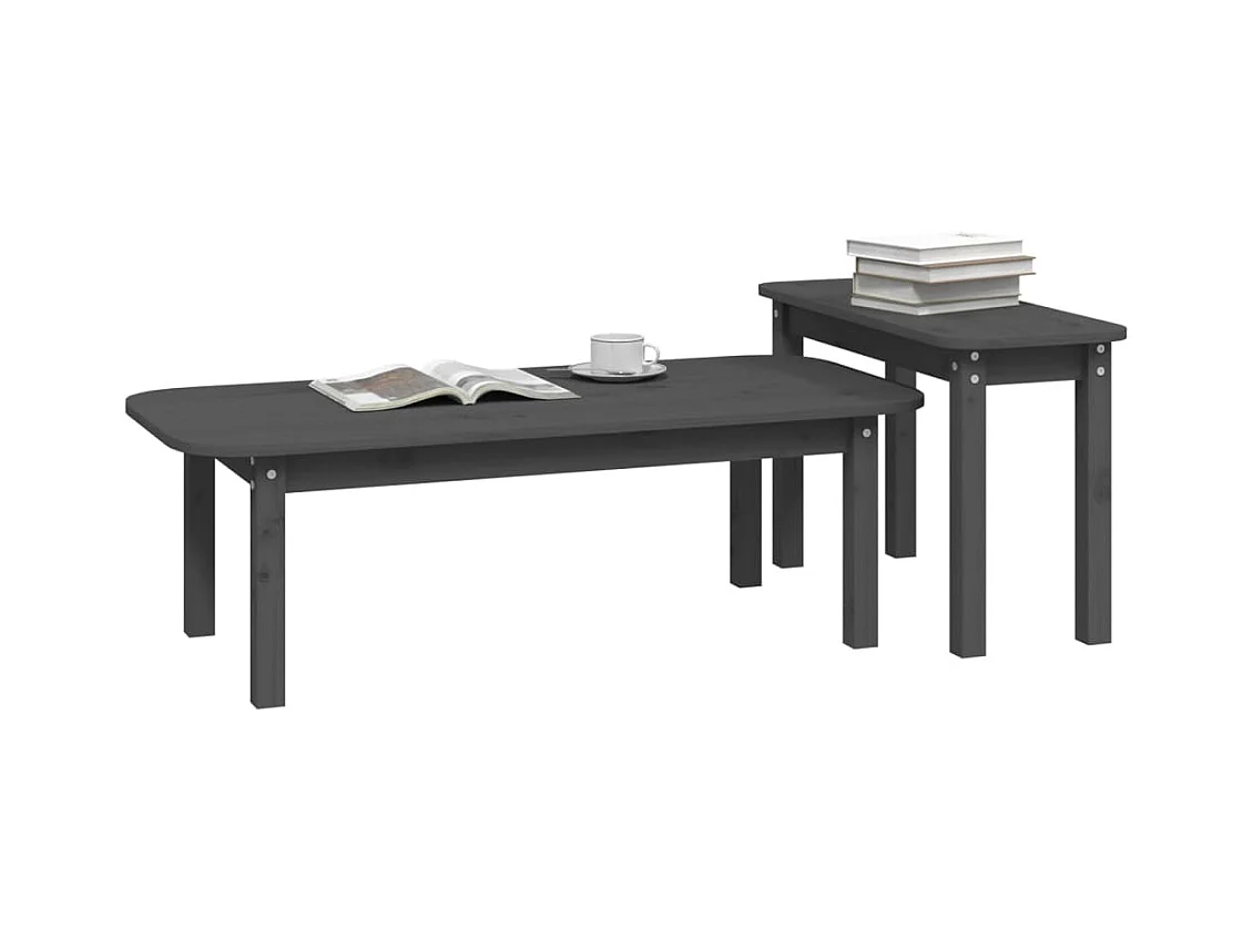 2-tlg. Couchtisch,Beistelltisch-Set Grau Massivholz Kiefer -MN76207