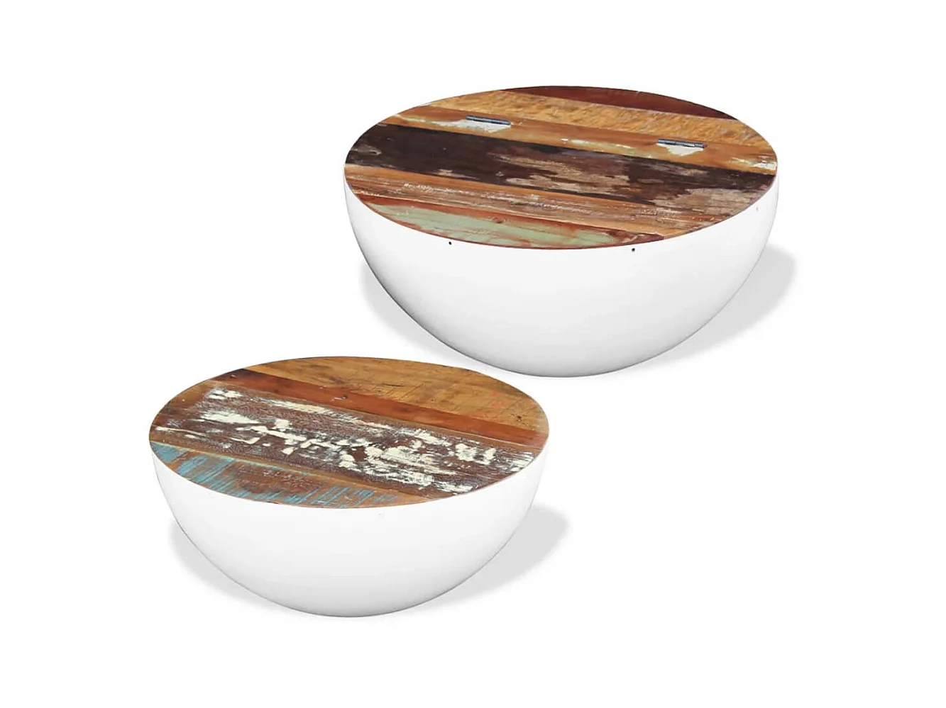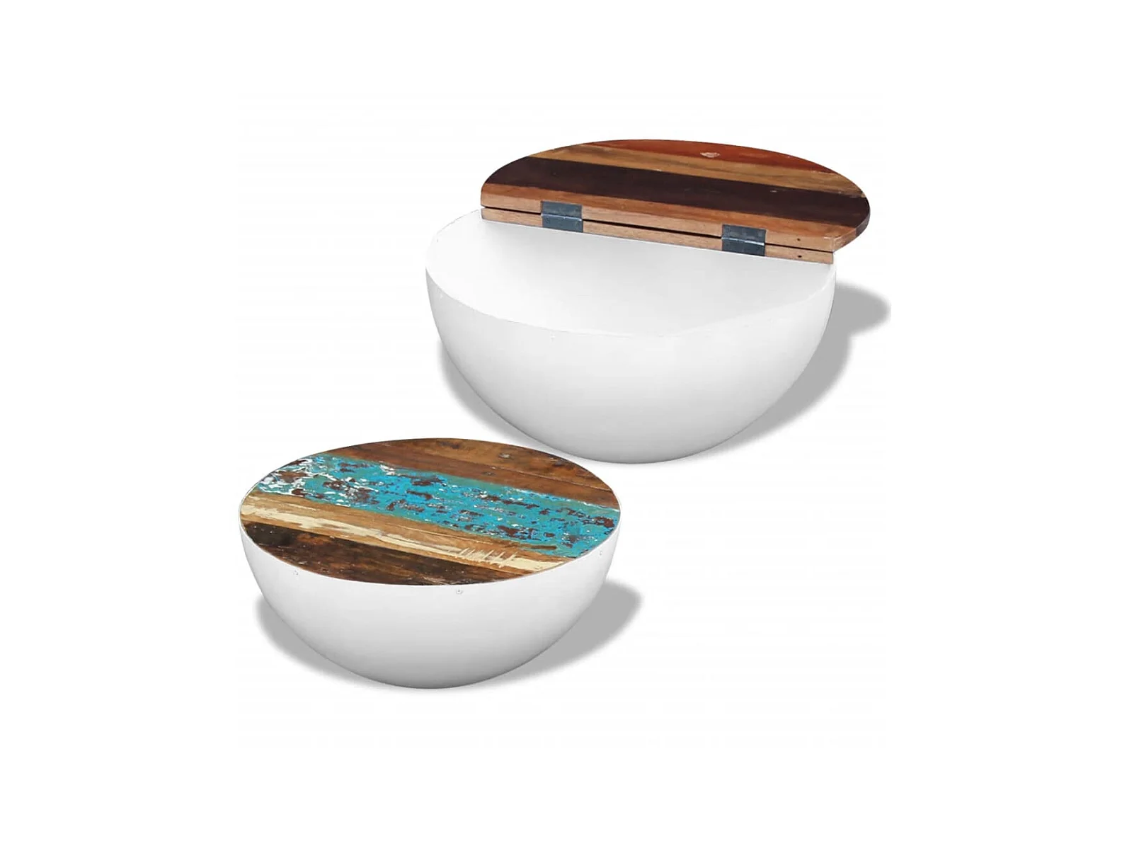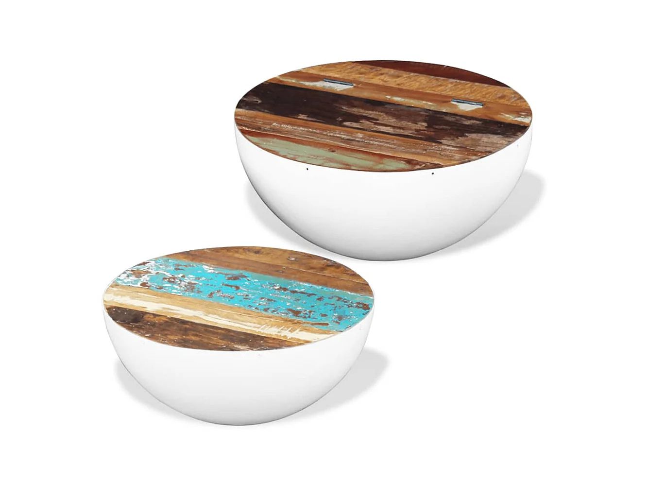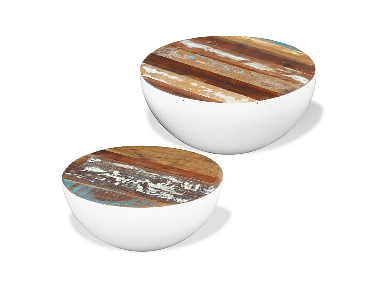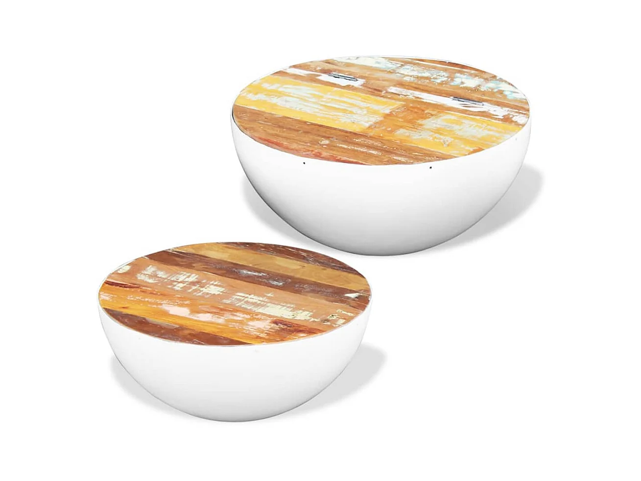 2-tlg. Couchtisch,Beistelltisch-Set Halbkugel Altholz -MN61029
