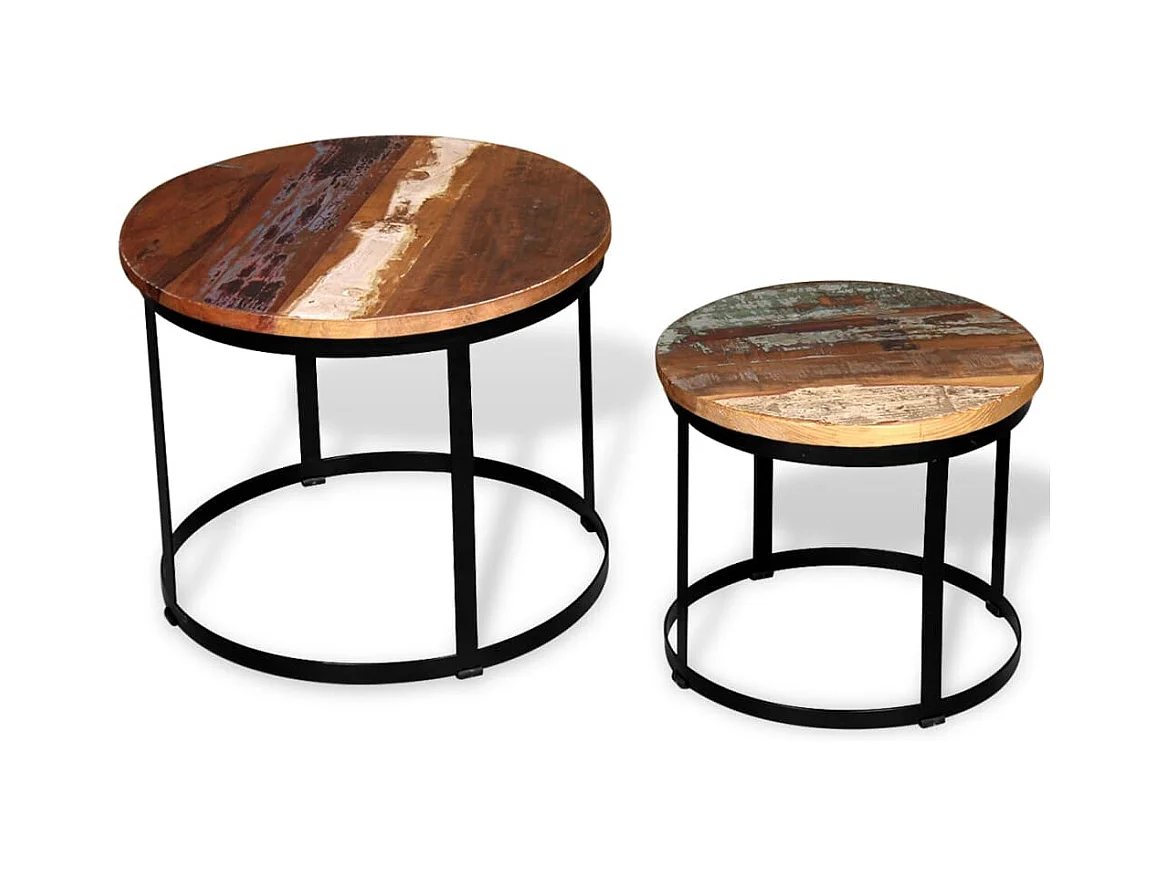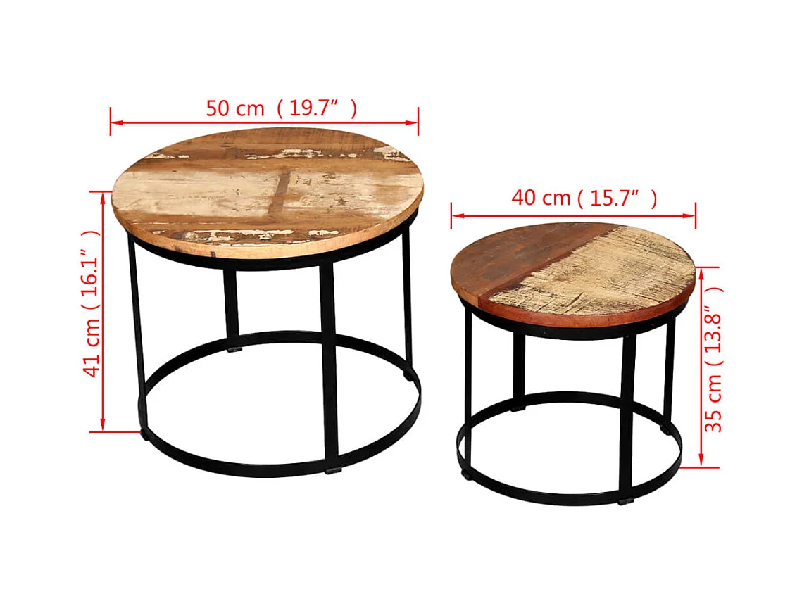2-tlg. Couchtisch-Set Altholz Massiv Rund 40cm/50cm