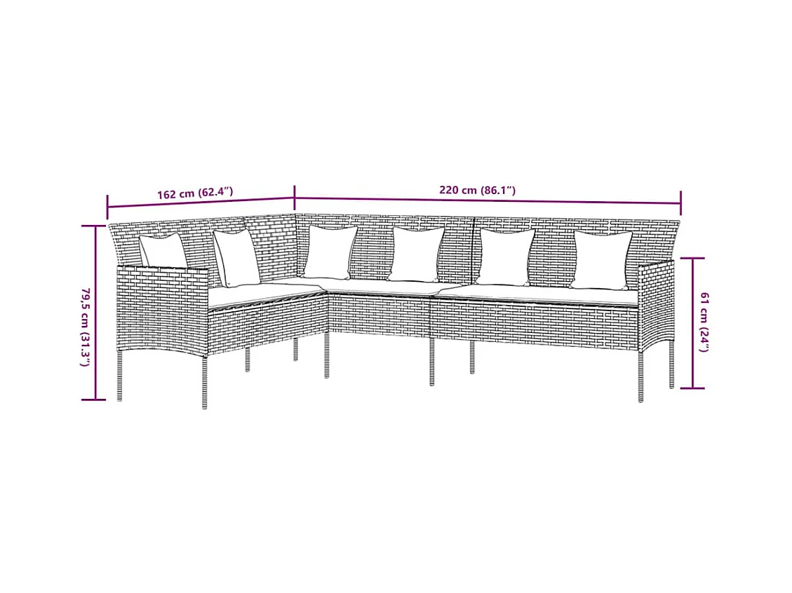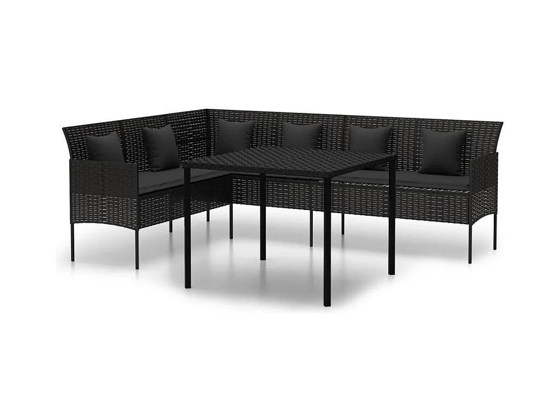 2-tlg. Garten-Essgruppe mit Kissen Schwarz Poly Rattan