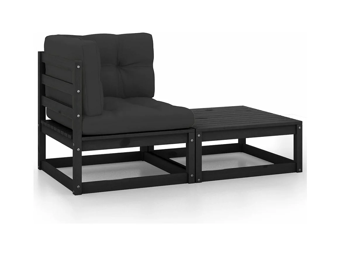 2-tlg. Garten-Sitzgruppe | Garten-Lounge-Set mit Kissen Schwarz Kiefer Massivholz -GKD219275