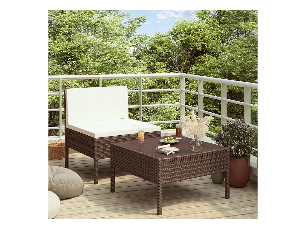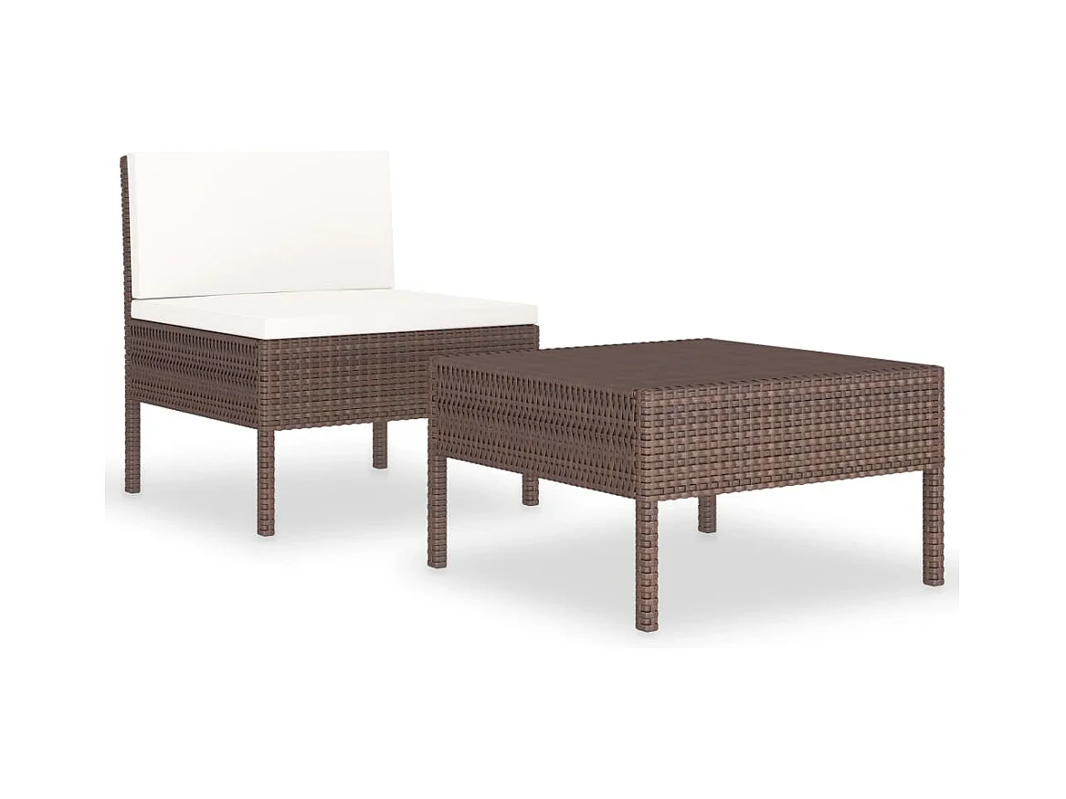 2-tlg. Garten-Sitzgruppe: Sofa + Tisch | Garten-Lounge-Set mit Auflagen Poly Rattan Braun -GKD403413