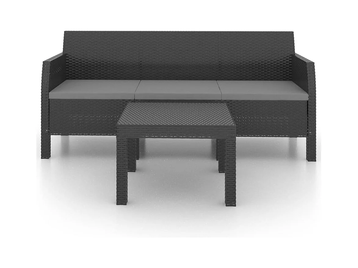 2-tlg. Garten-Sitzgruppe: Sofa + Tisch | Garten-Lounge-Set mit Kissen PP Rattan Anthrazit -GKD918265