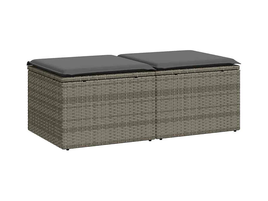 2-tlg. Garten-Sofagarnitur mit Kissen Grau Poly Rattan Akazie