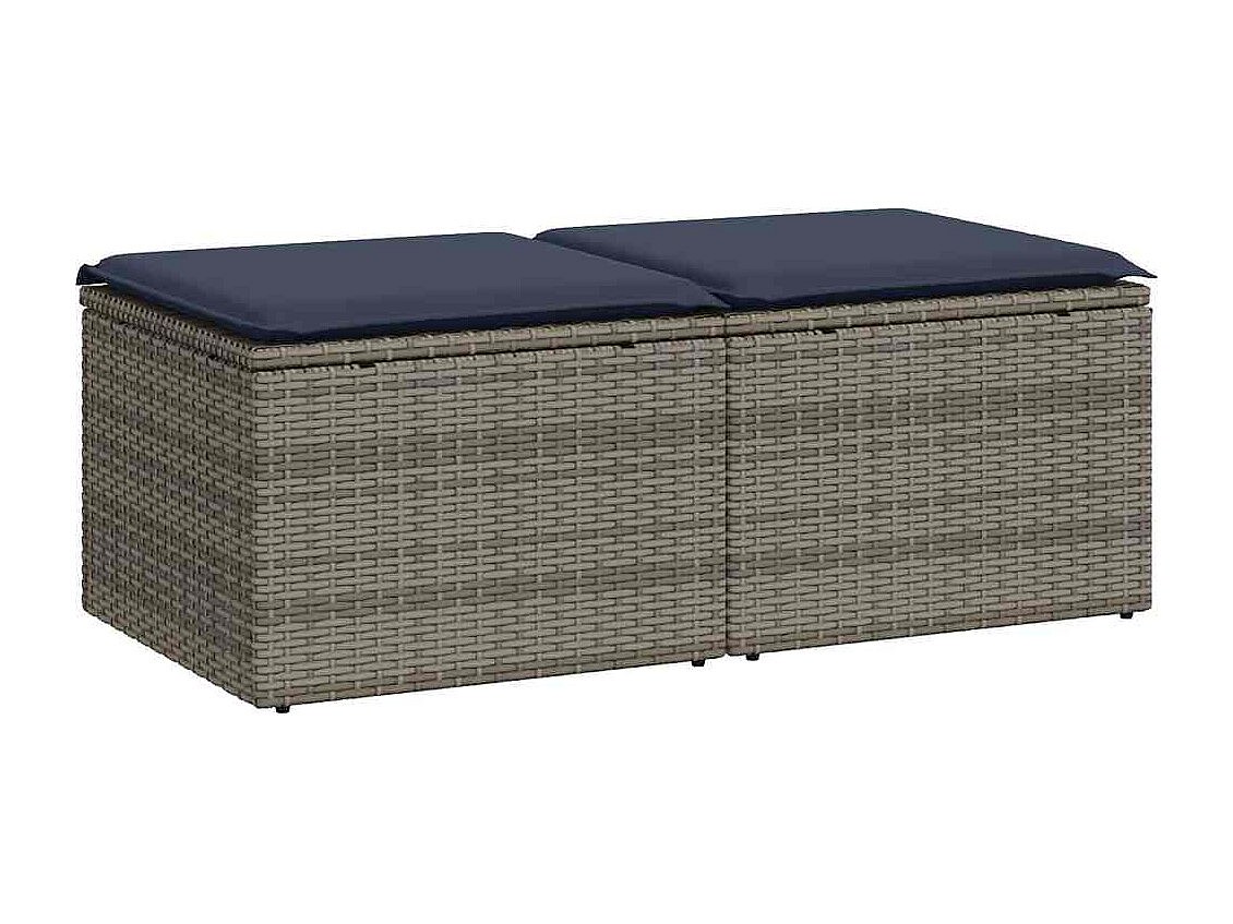 2-tlg. Garten-Sofagarnitur mit Kissen Grau Poly Rattan Akazie