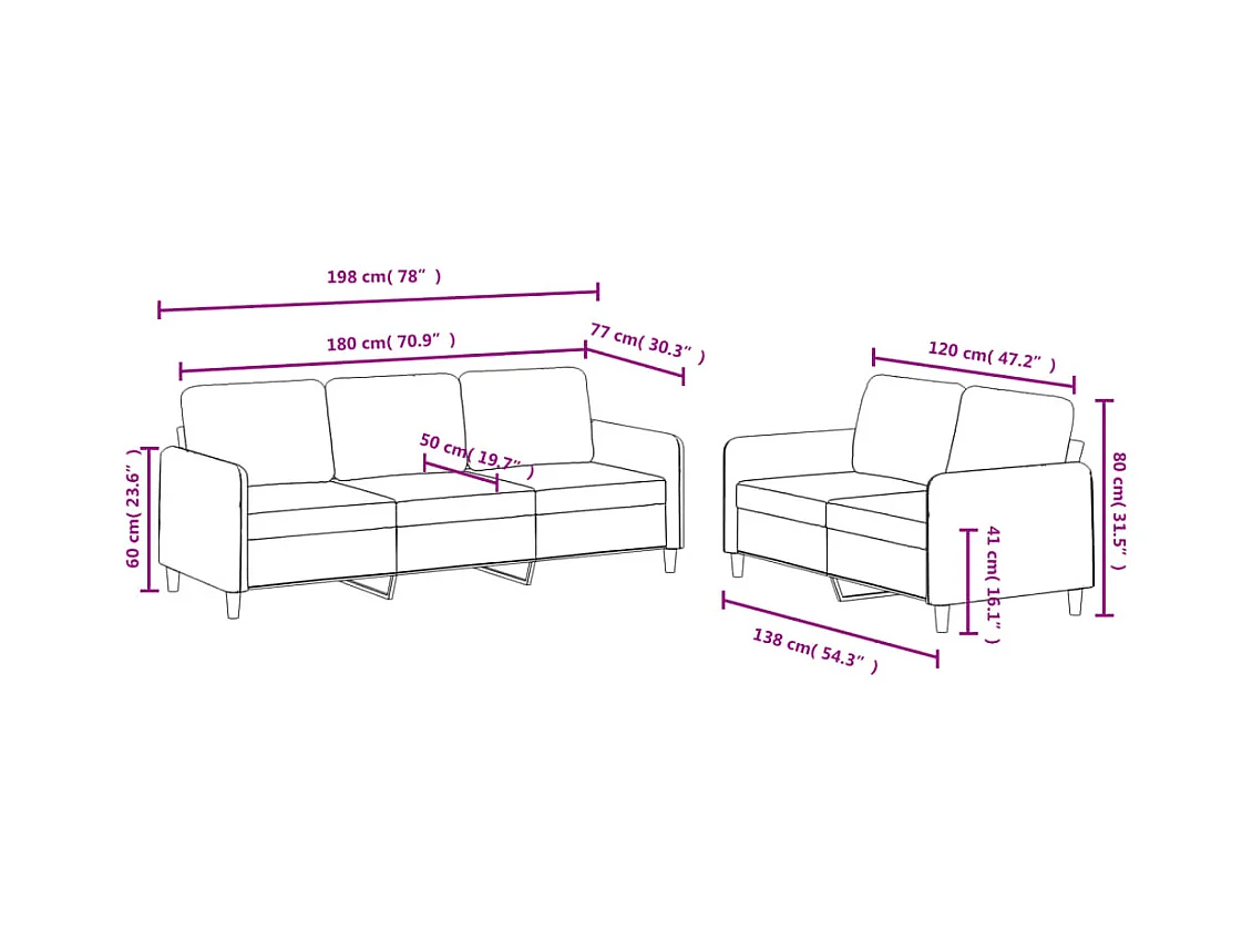 2-tlg. Sofagarnitur Dunkelgrau Samt