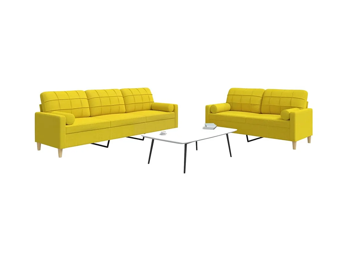 2-tlg. Sofagarnitur mit Dekokissen Hellgelb Stoff