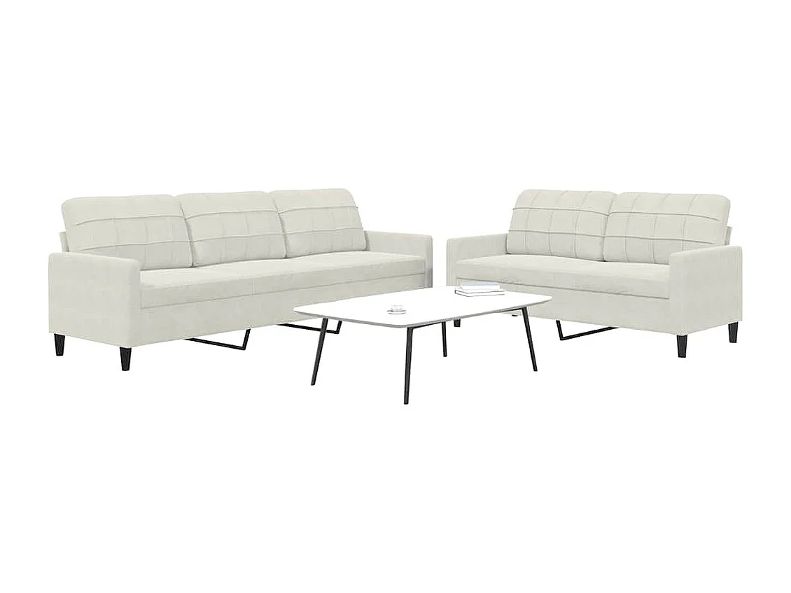 2-tlg. Sofagarnitur mit Kissen Creme Samt