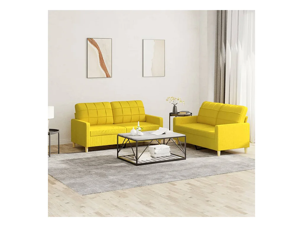 2-tlg. Sofagarnitur mit Kissen Hellgelb Stoff