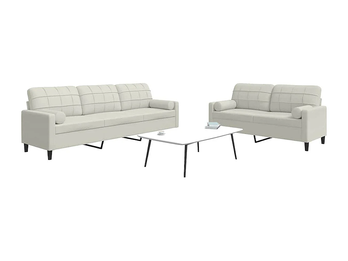 2-tlg. Sofagarnitur mit Kissen und Nackenrollen Creme Samt