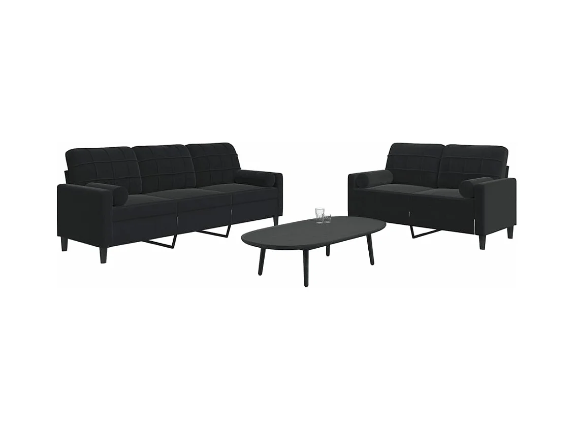 2-tlg. Sofagarnitur mit Kissen und Nackenrollen Schwarz Samt