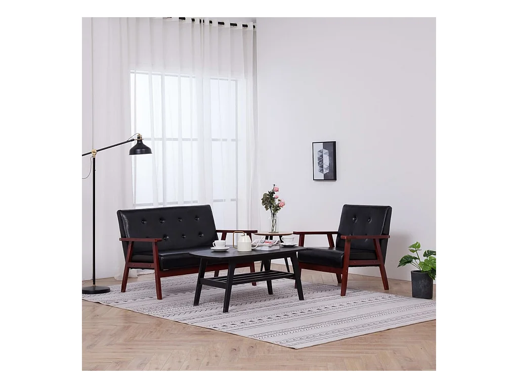 2-tlg. Sofagarnitur Schwarz Kunstleder