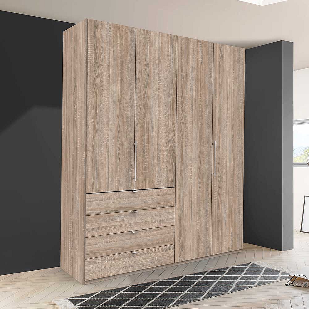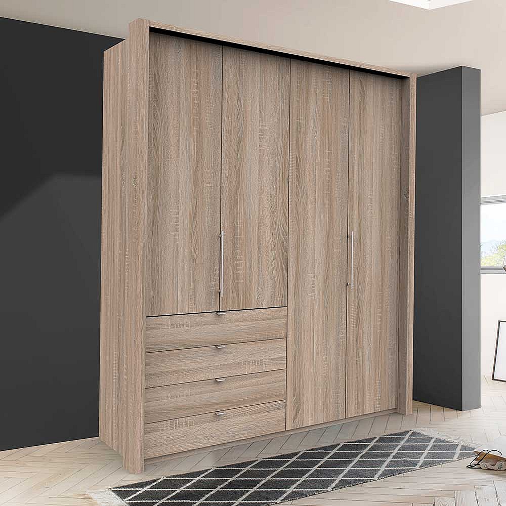 2 türiger Jugend Kleiderschrank mit vier Schubladen Eiche Sägerau