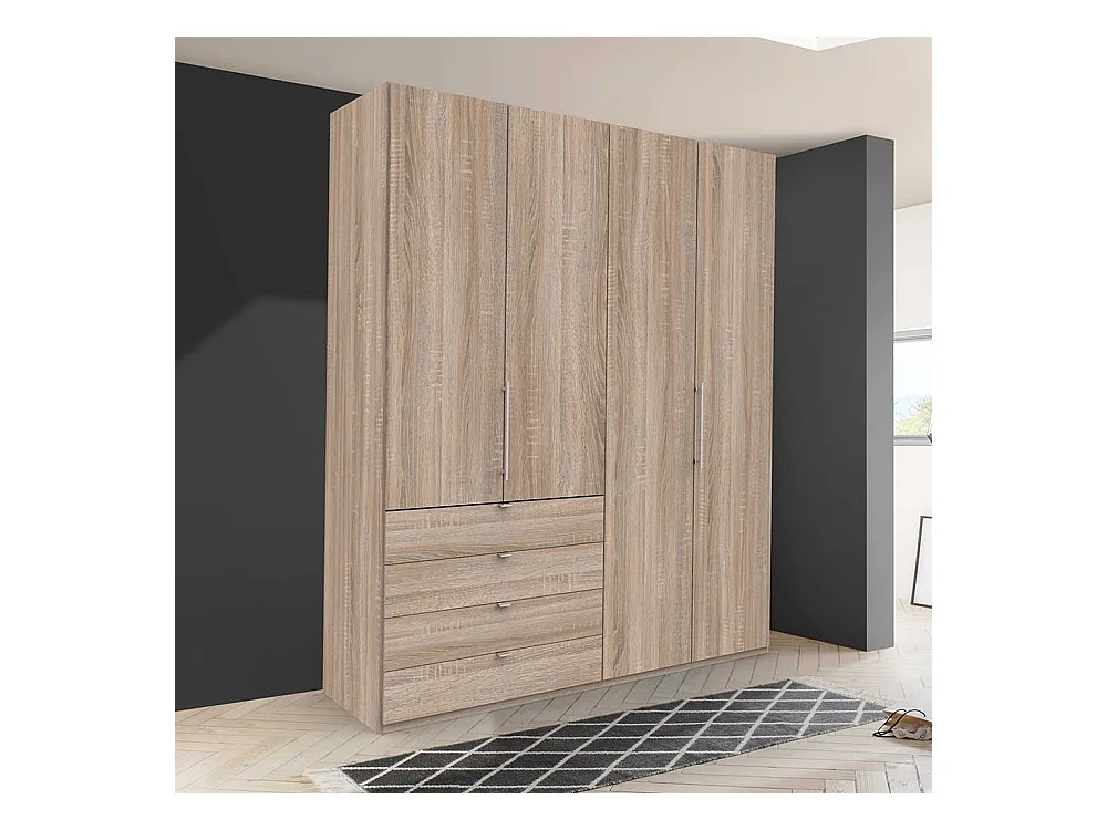 2 türiger Jugend Kleiderschrank mit vier Schubladen Eiche Sägerau
