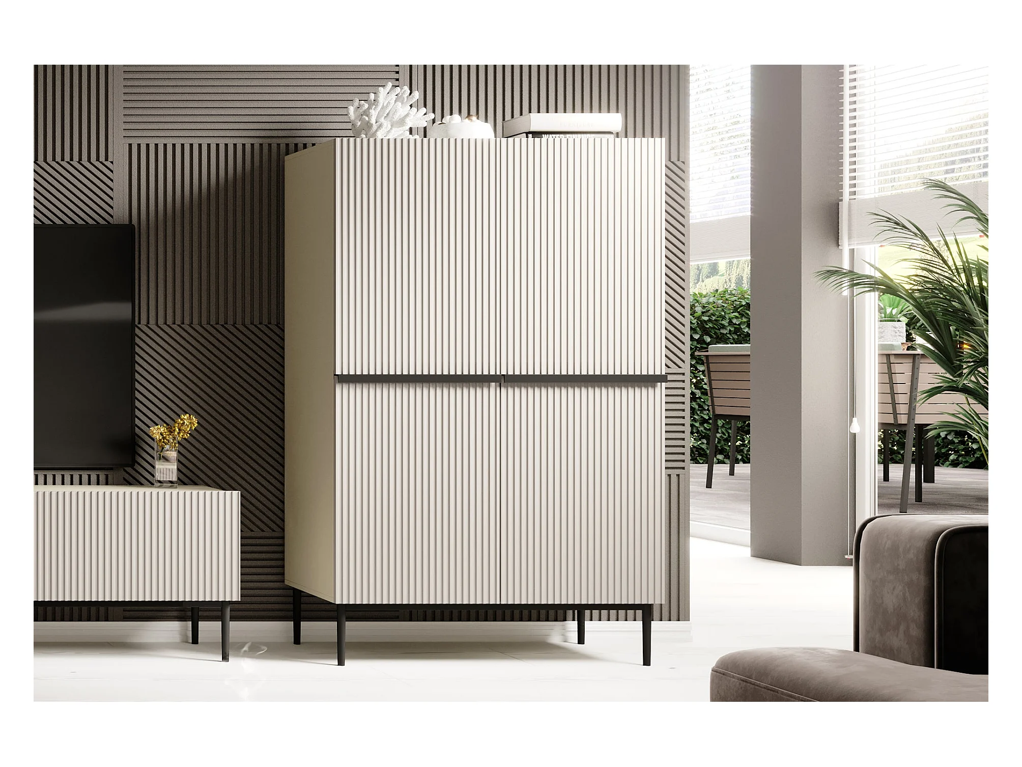 2-türiges Sideboard mit Fuß aus schwarzem Kaschmirmetall 100x160 cm