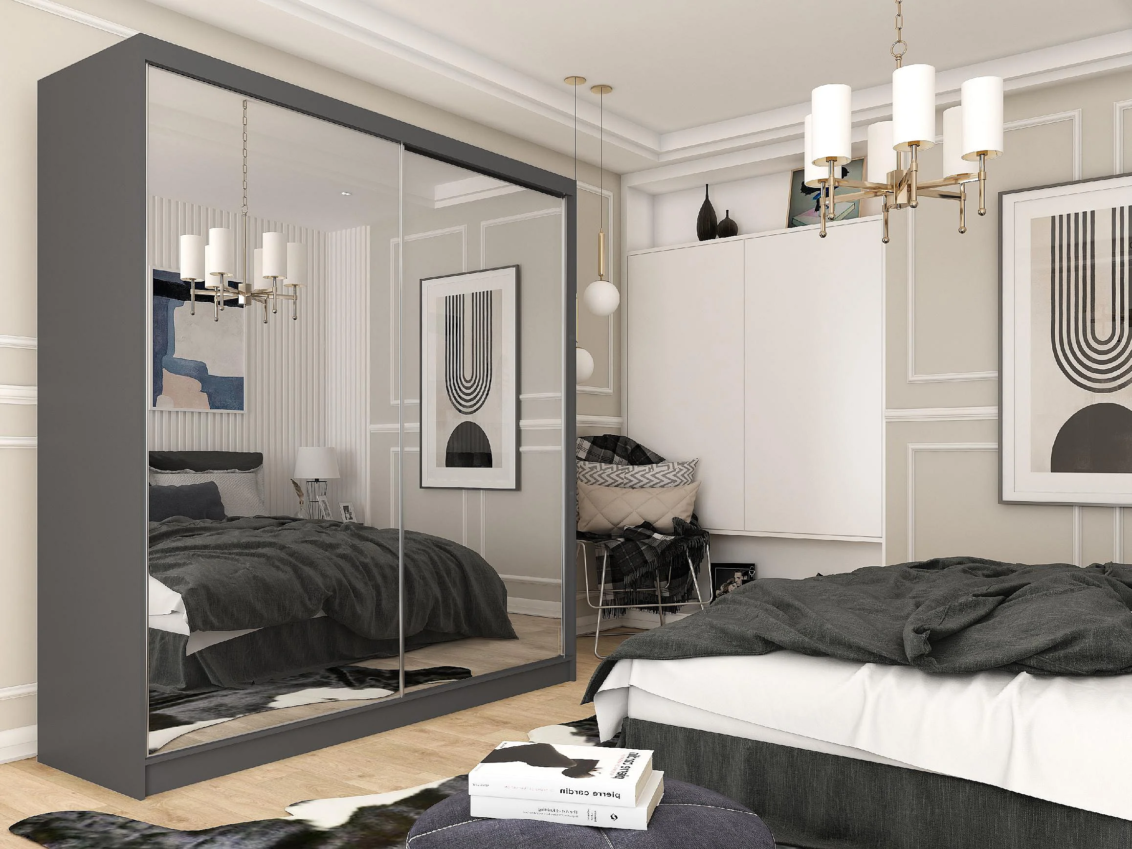 200 cm Kleiderschrank Darix mit Spiegel inklusive 2 Schiebetüren Schwebetürenschrank (Farbe: graphit)