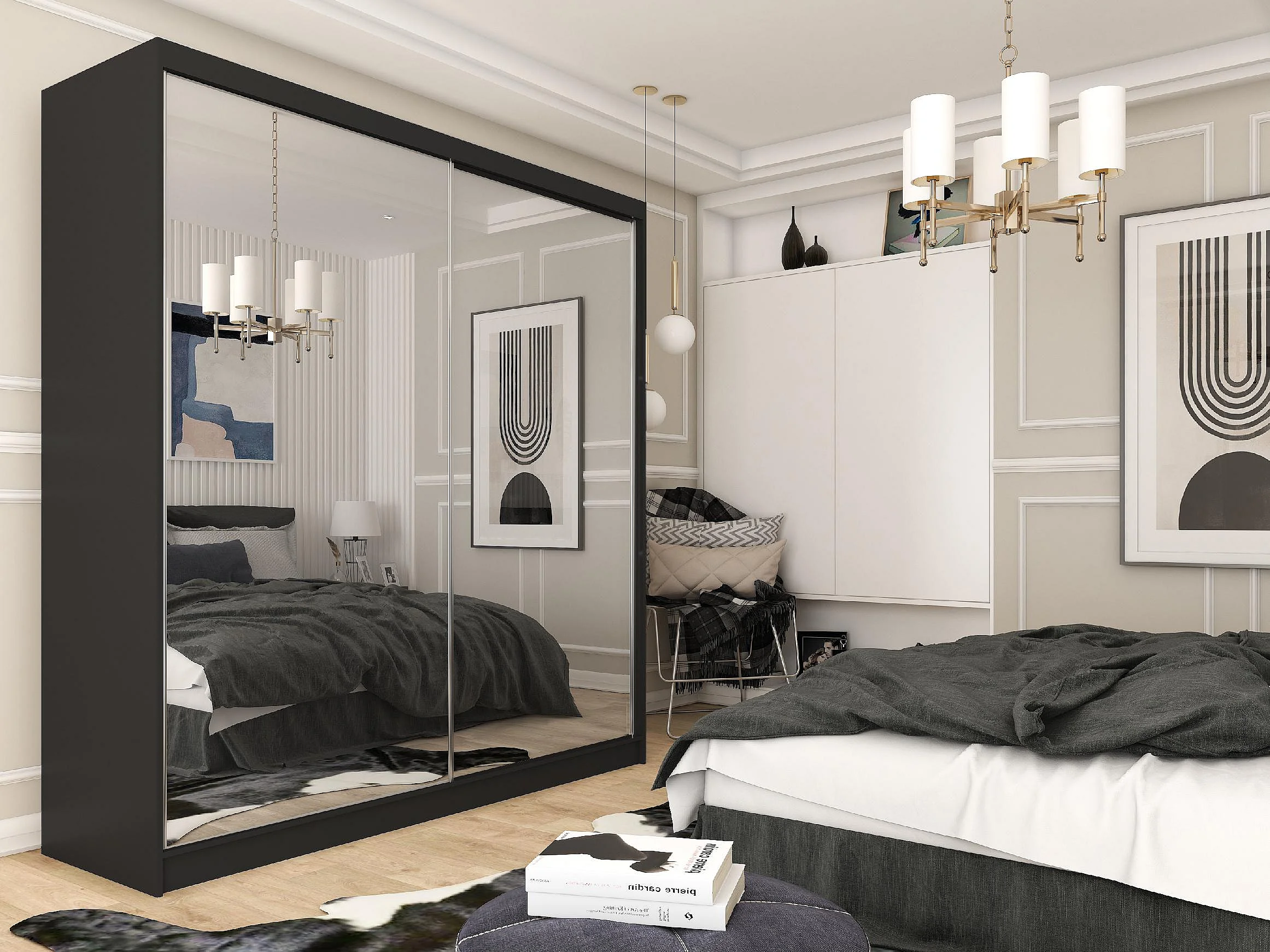 200 cm Kleiderschrank Darix mit Spiegel inklusive 2 Schiebetüren Schwebetürenschrank (Farbe: schwarz)