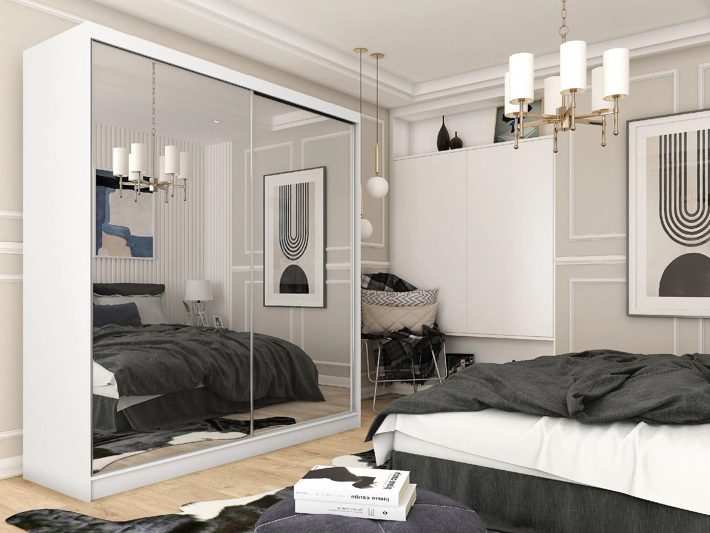 200 cm Kleiderschrank Darix mit Spiegel inklusive 2 Schiebetüren Schwebetürenschrank (Farbe: weiß)