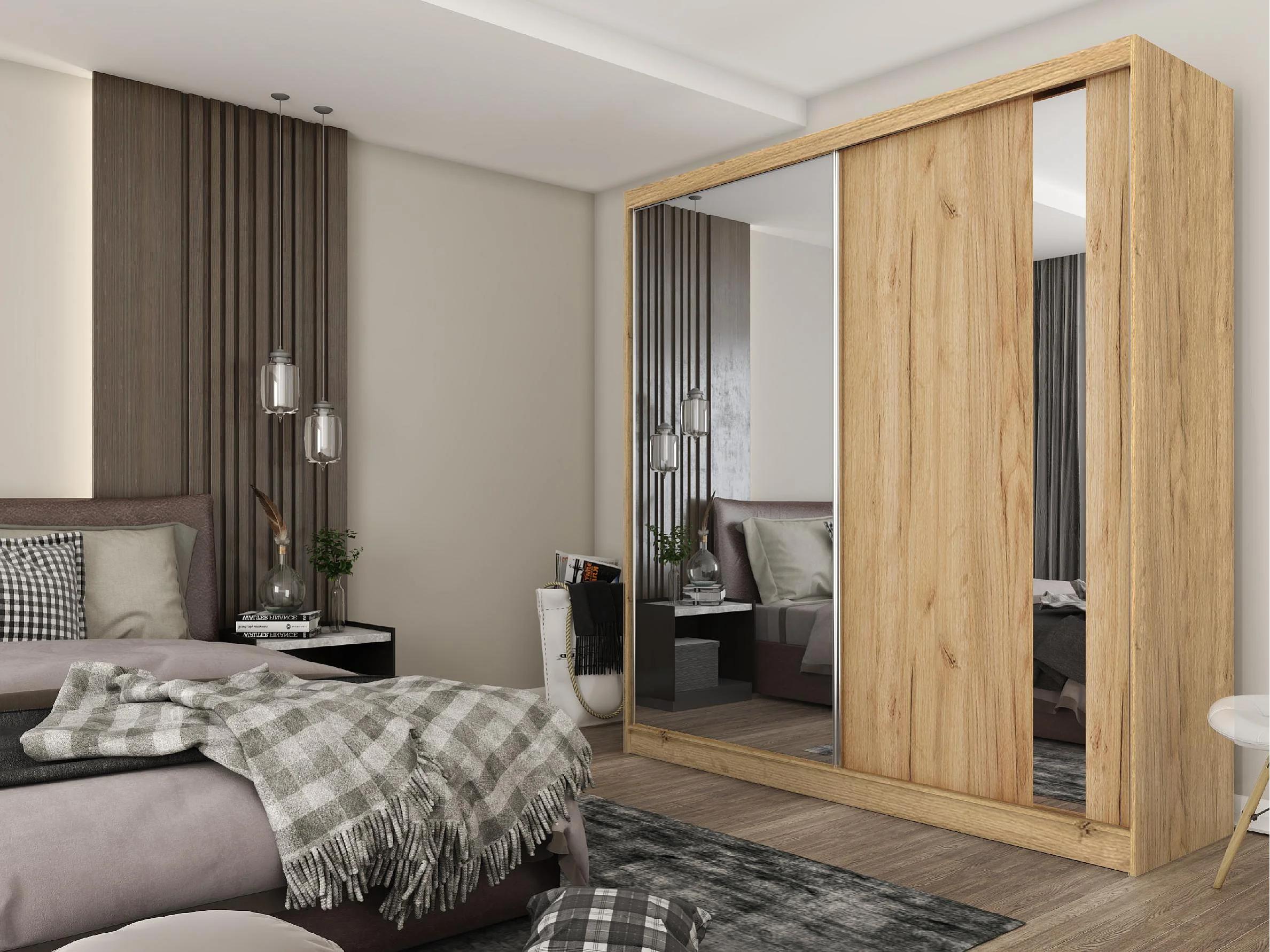 200 cm Kleiderschrank Gabo mit Spiegel inklusive 2 Schiebetüren Schwebetürenschrank (Farbe: artisan)