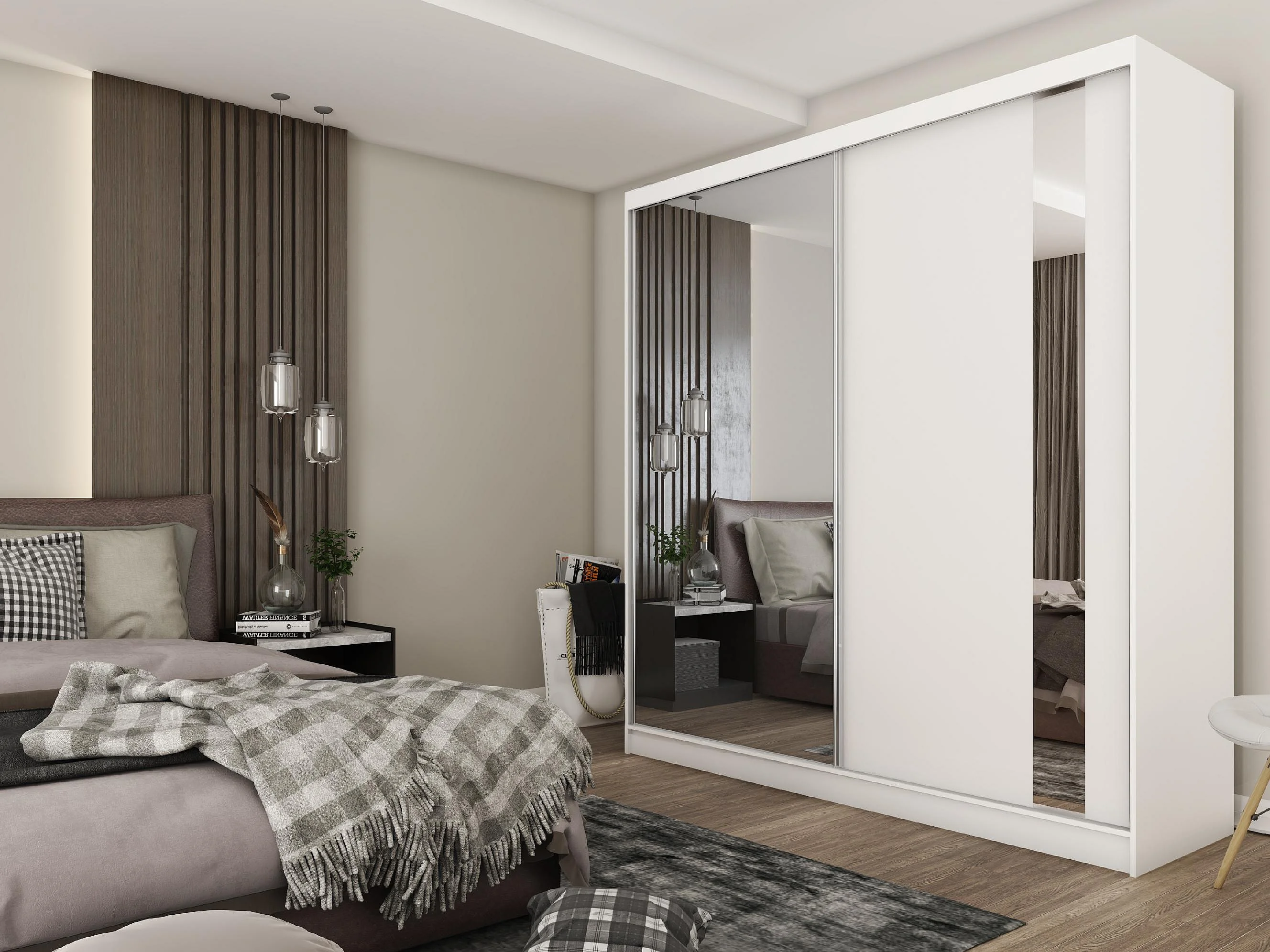 200 cm Kleiderschrank Gabo mit Spiegel inklusive 2 Schiebetüren Schwebetürenschrank (Farbe: weiß)