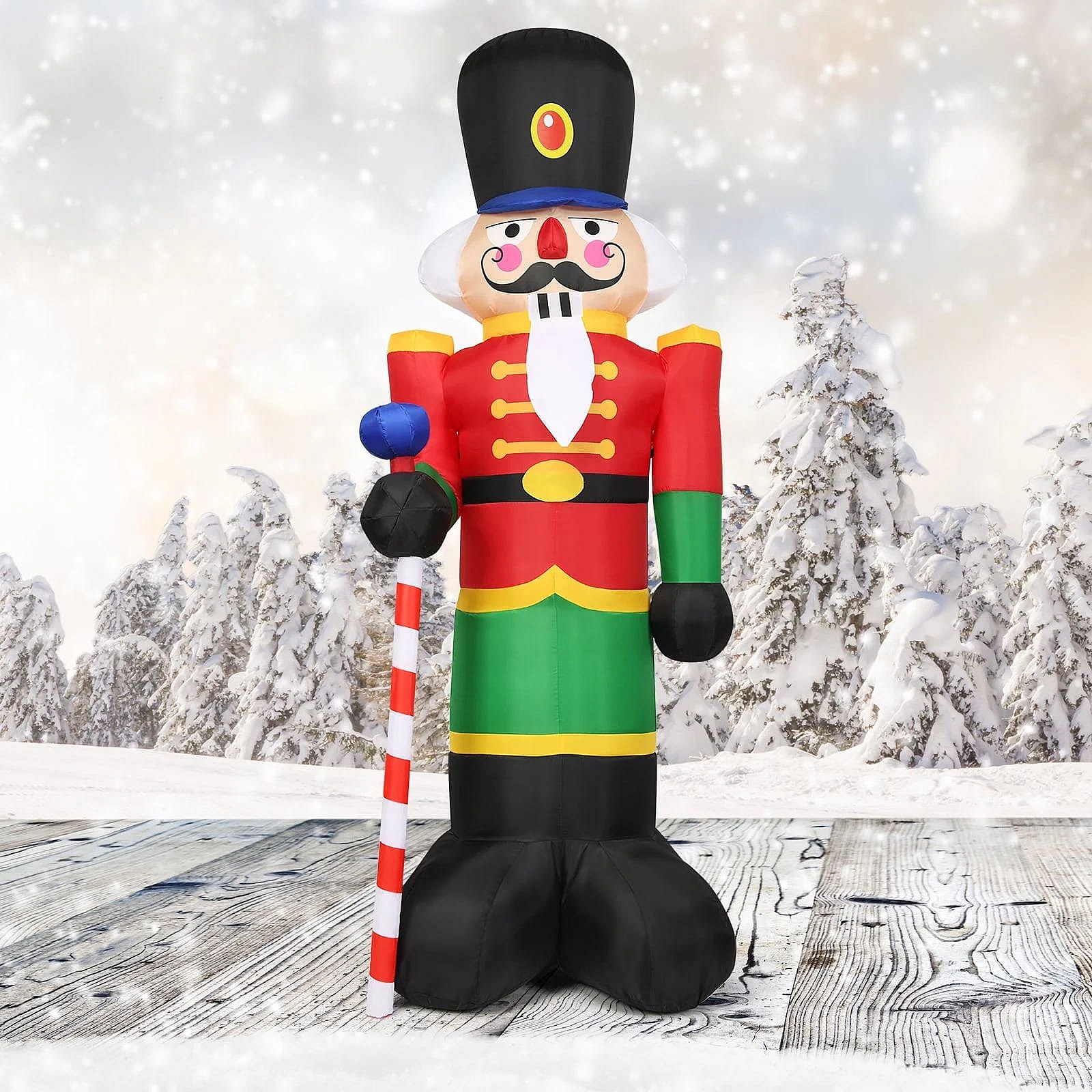 2,4 m hoher Aufblasbarer Weihnachts-Nussknacker-Soldat mit 3 LED-Leuchten und Süßigkeiten-Stab Bunt