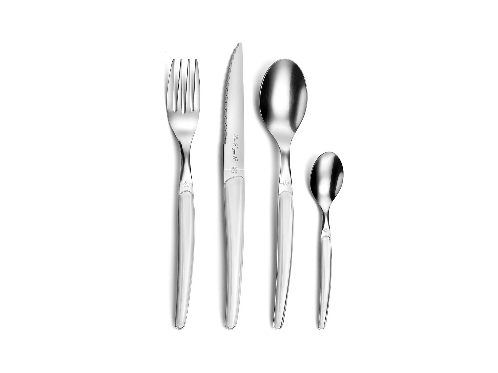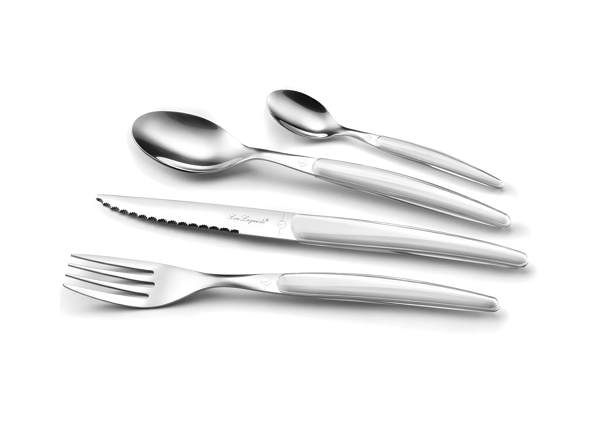 Besteck Lou Laguiole Montana Blanc 24-teilig - Weißer Kristallgriff, mikroverzahnte Edelstahlklinge, zeitgemäßes Design
