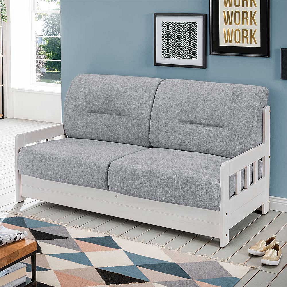 2er Ausziehsofa in Grau und Weiß Landhausstil