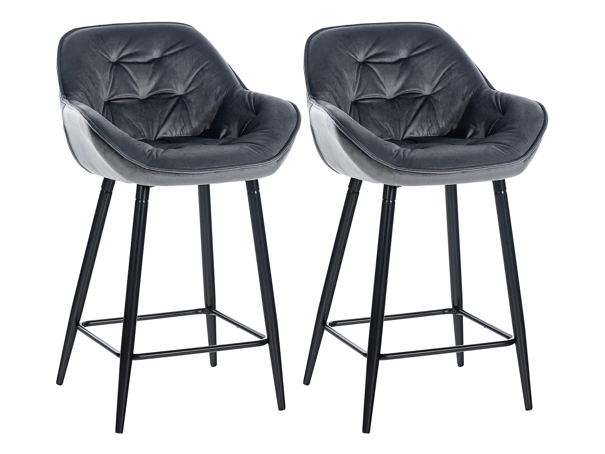 2er Set Barhocker - Samt & Metall matt schwarz - dunkelgrau - Gibson 76