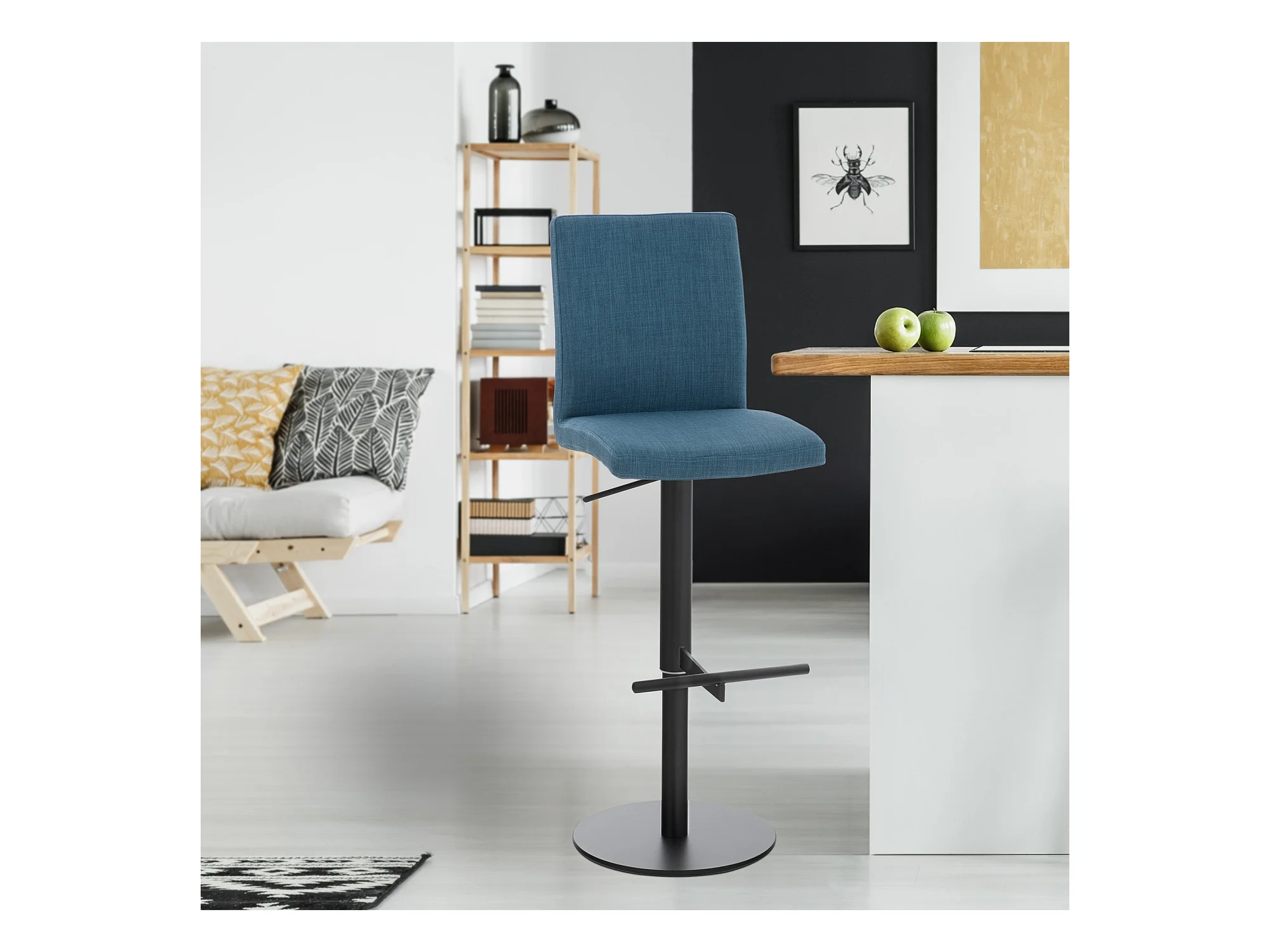2er Set Barhocker - Stoff & schwarz - blau - Cadiz