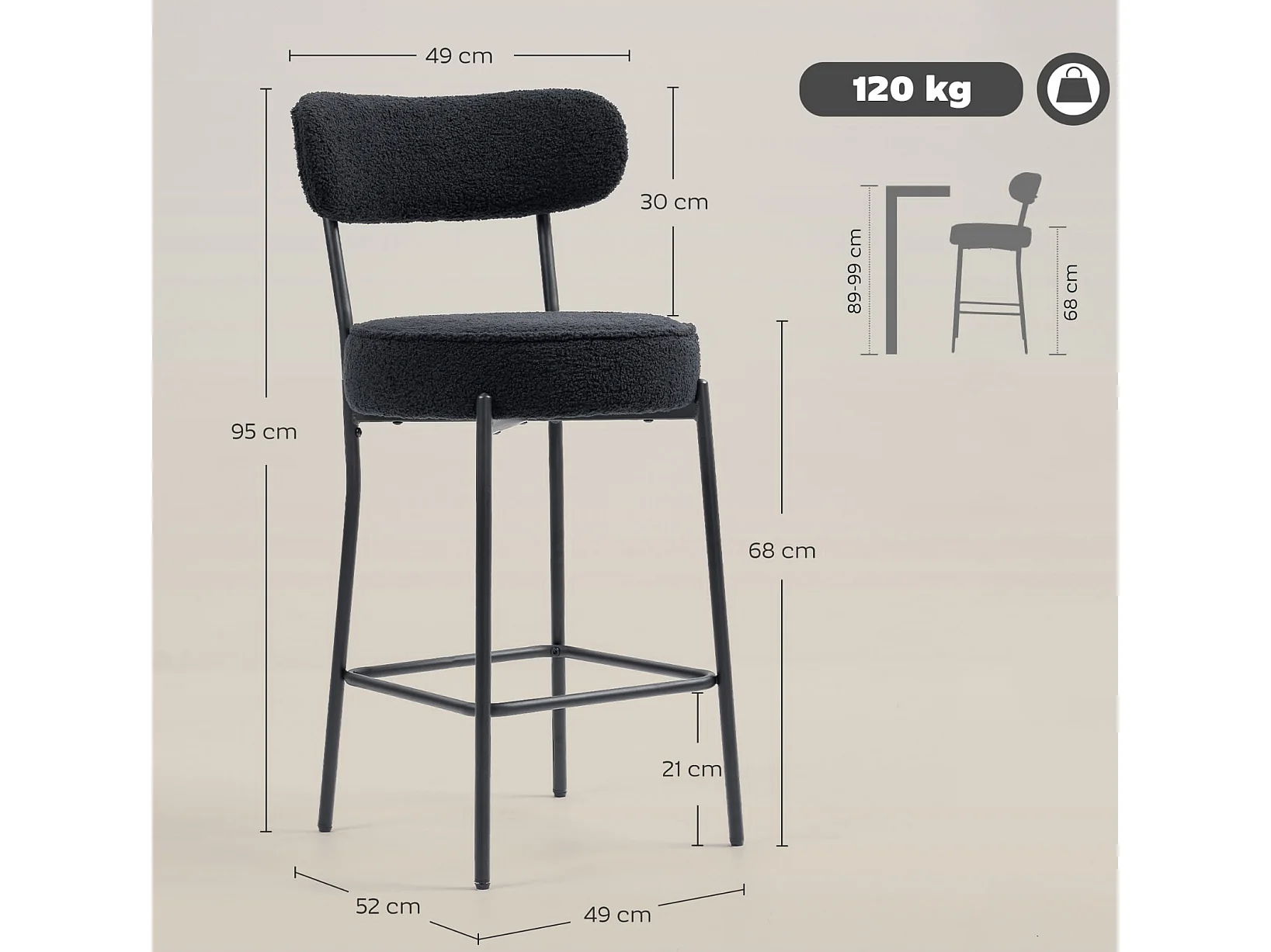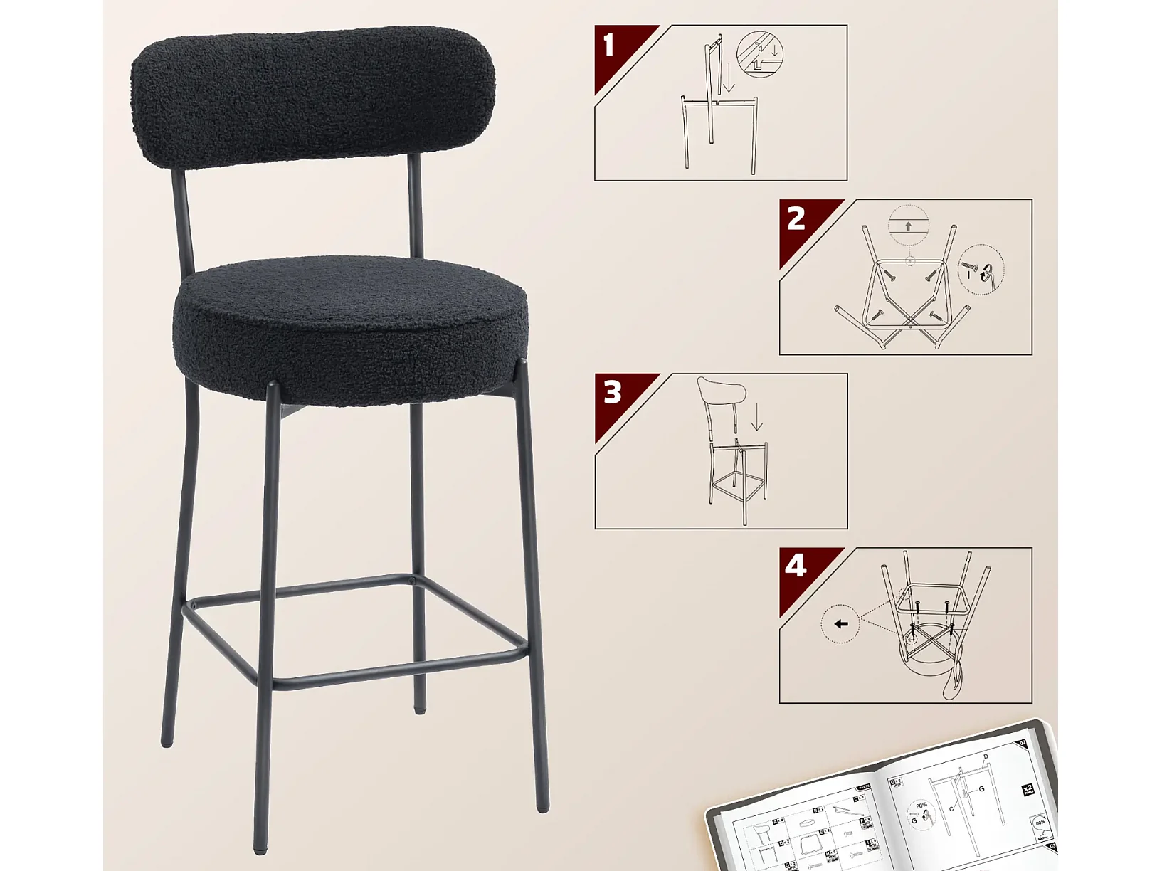 2er-Set Barstühle mit Polstersitz und Fußstütze,Esszimmerstuhl Metallrahmen,Küchenstuhl