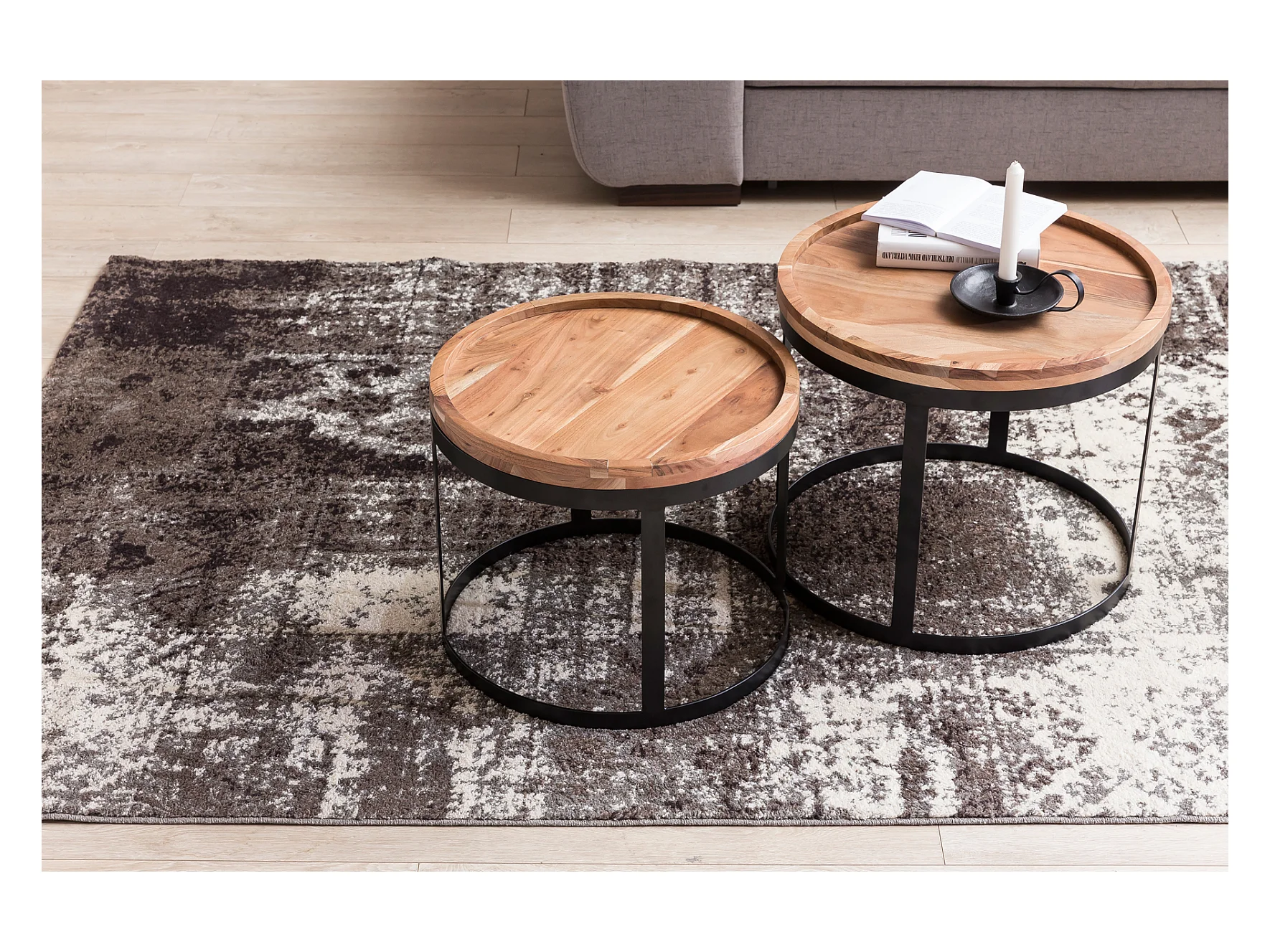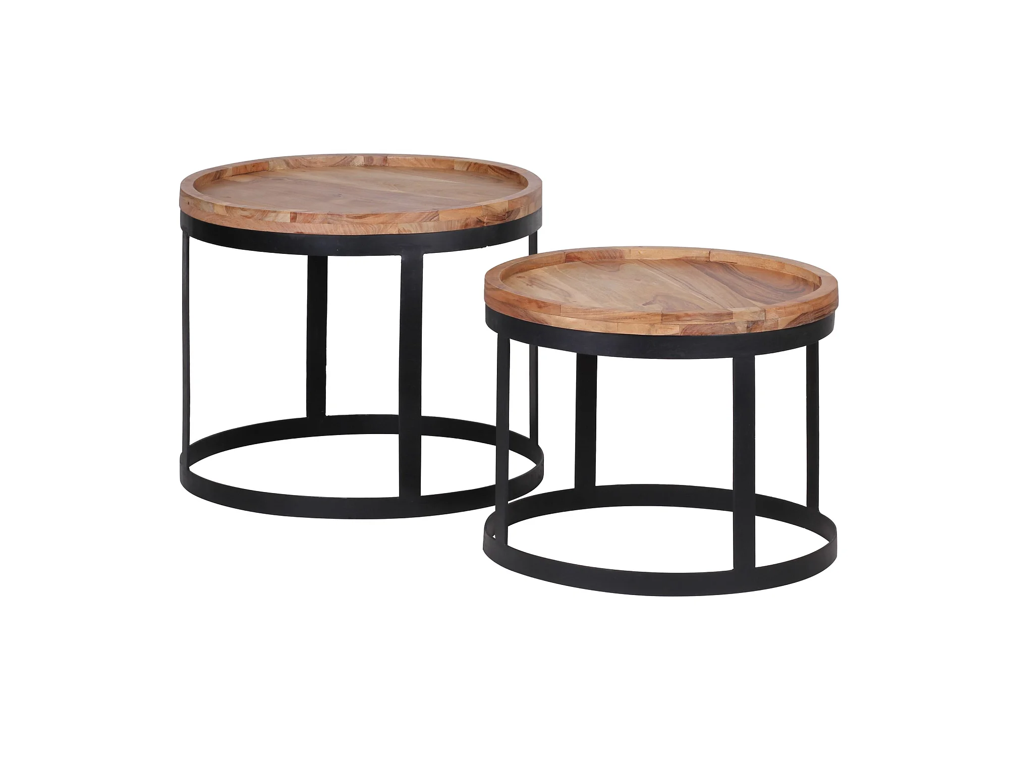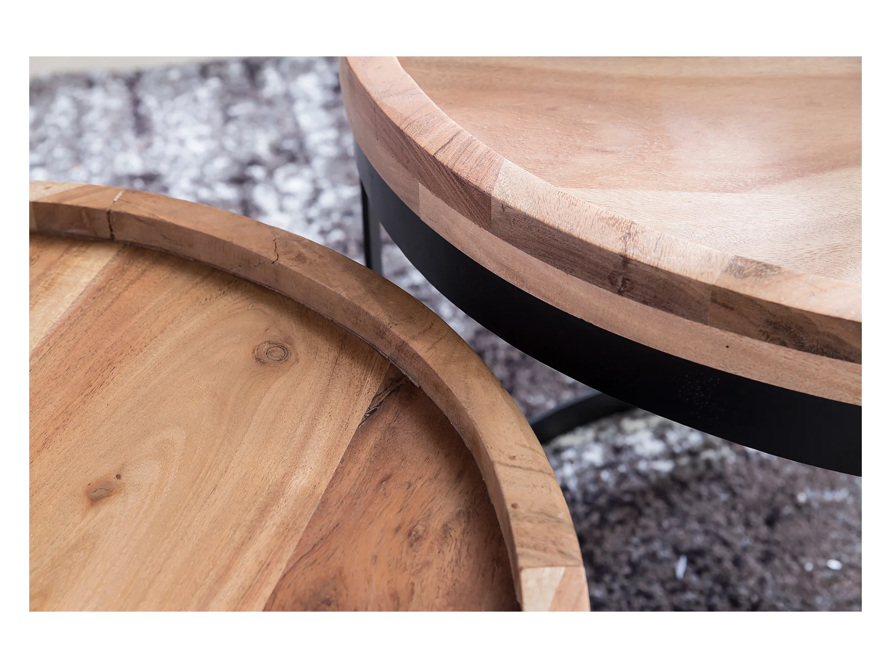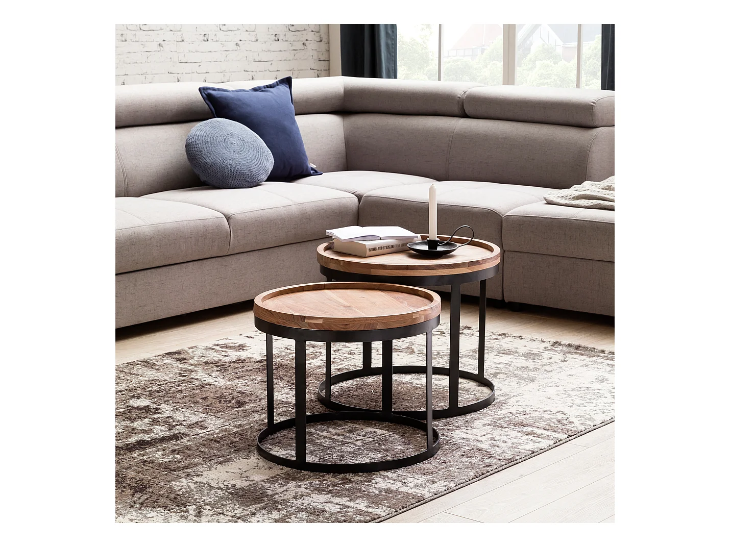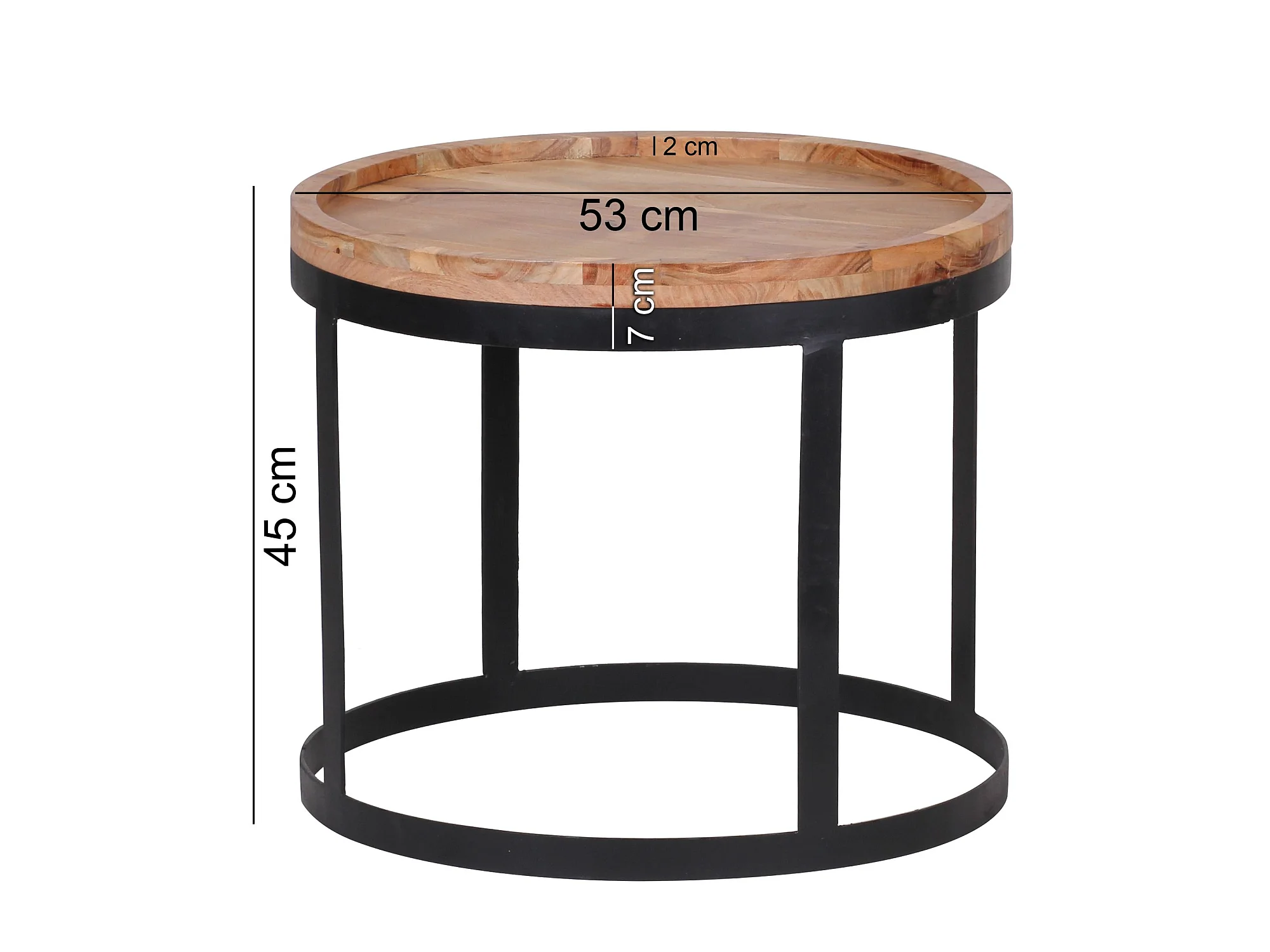 2er Set Beistelltische Massivholz Wohnzimmertisch Landhaus Metallgestell