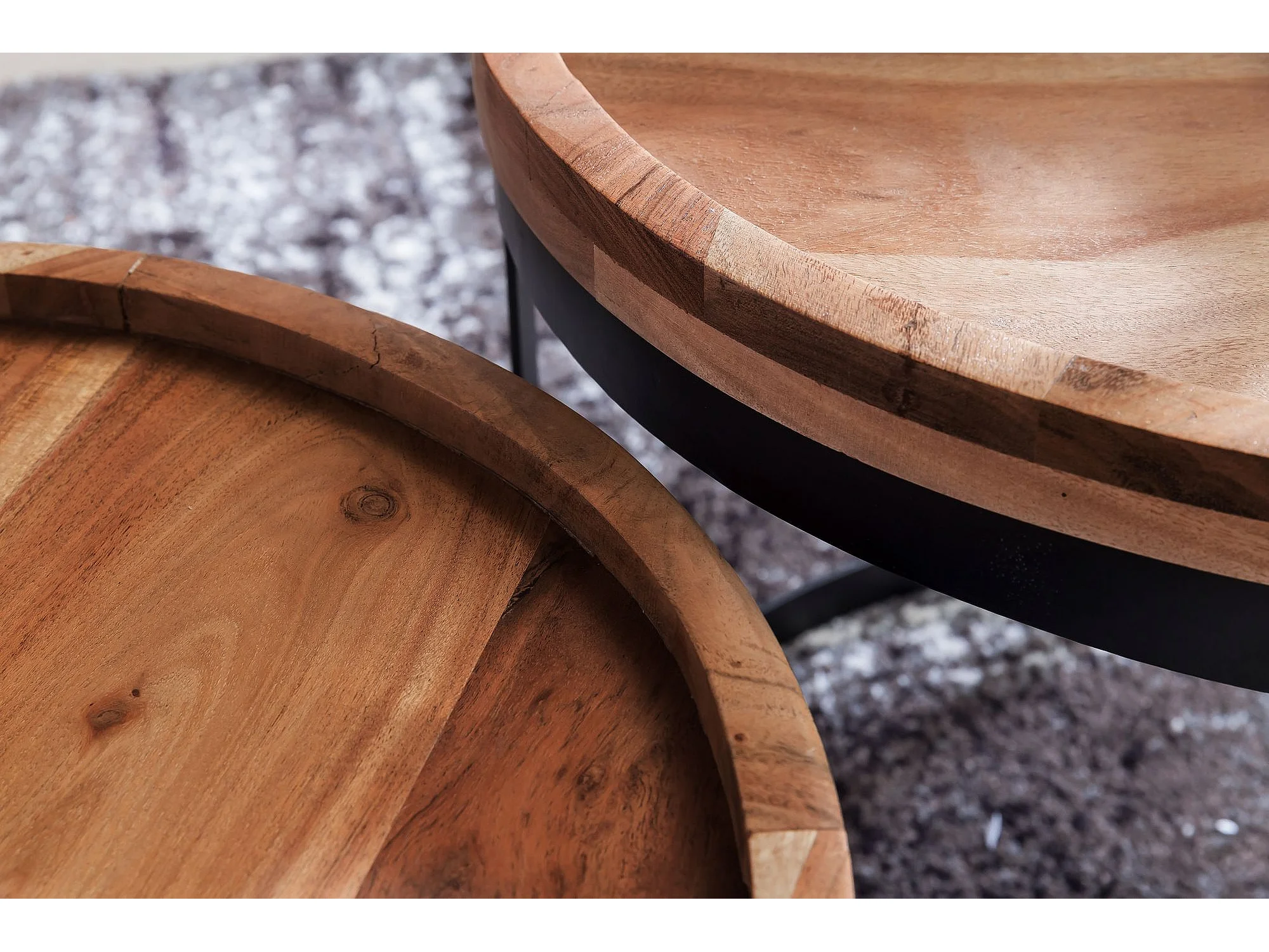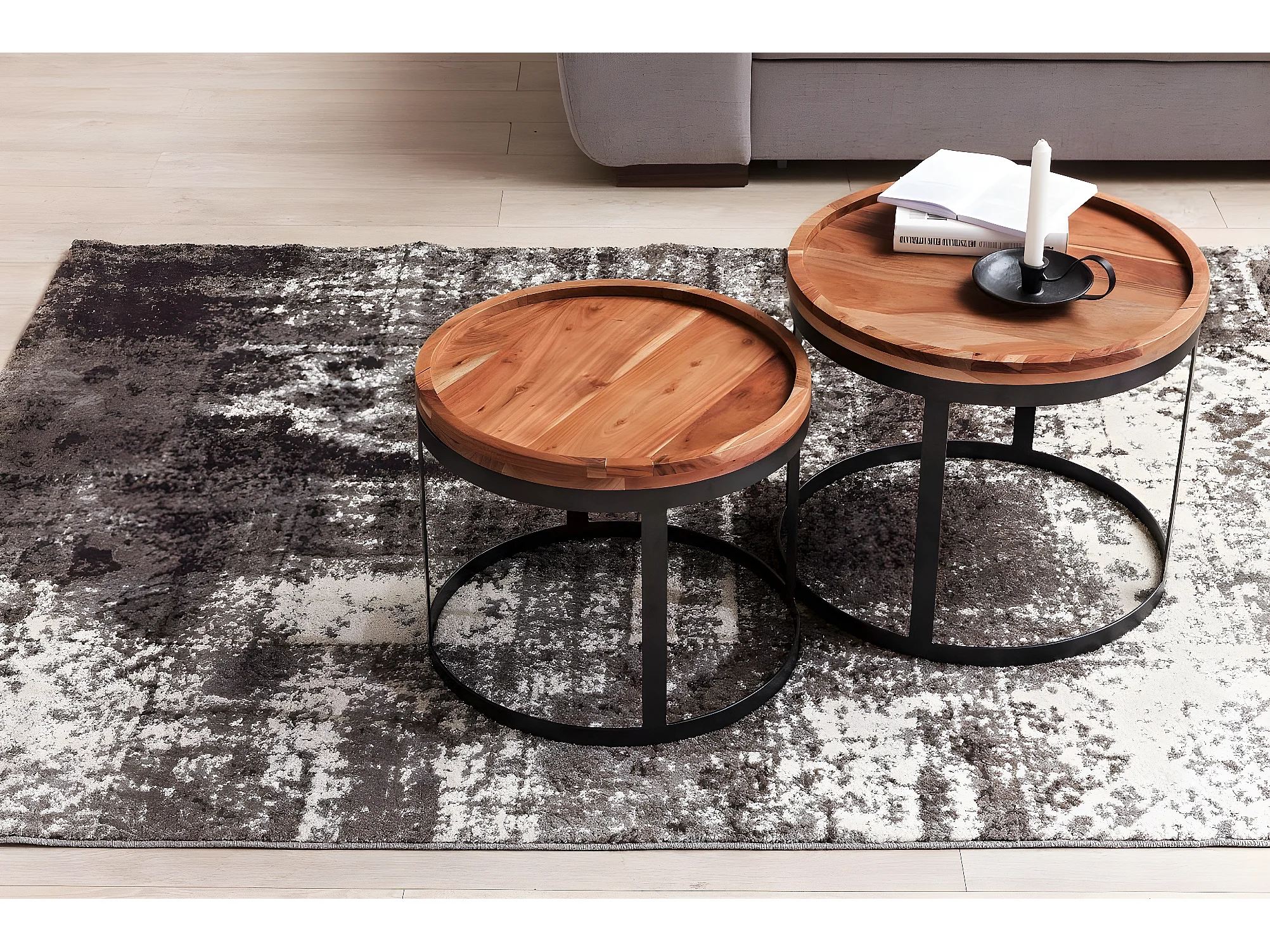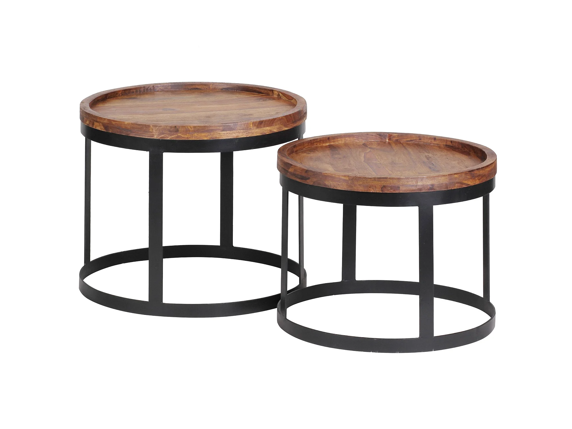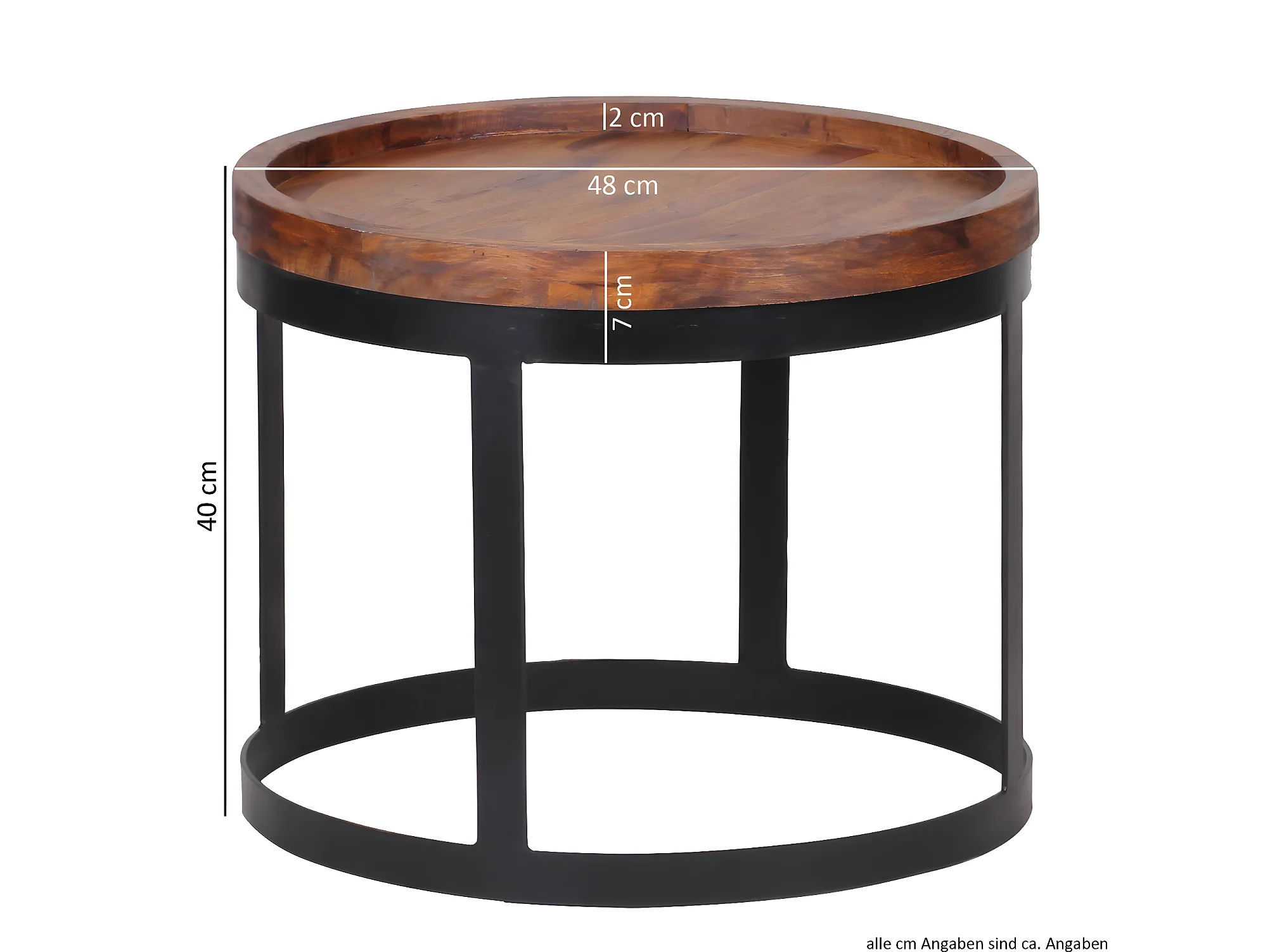 2er Set Beistelltische Massivholz Wohnzimmertisch Landhaus Metallgestell