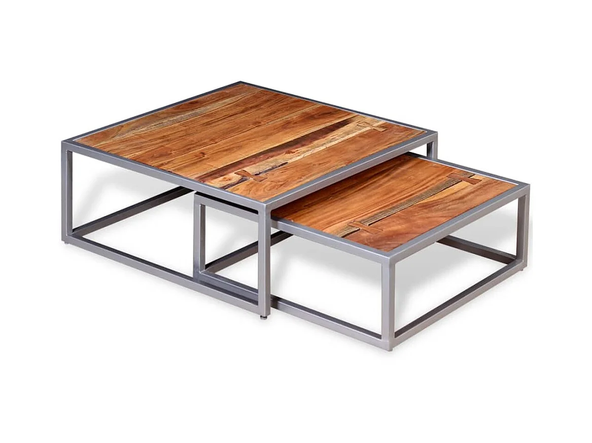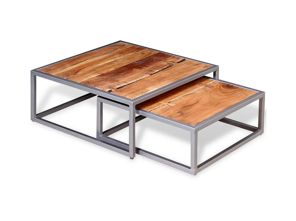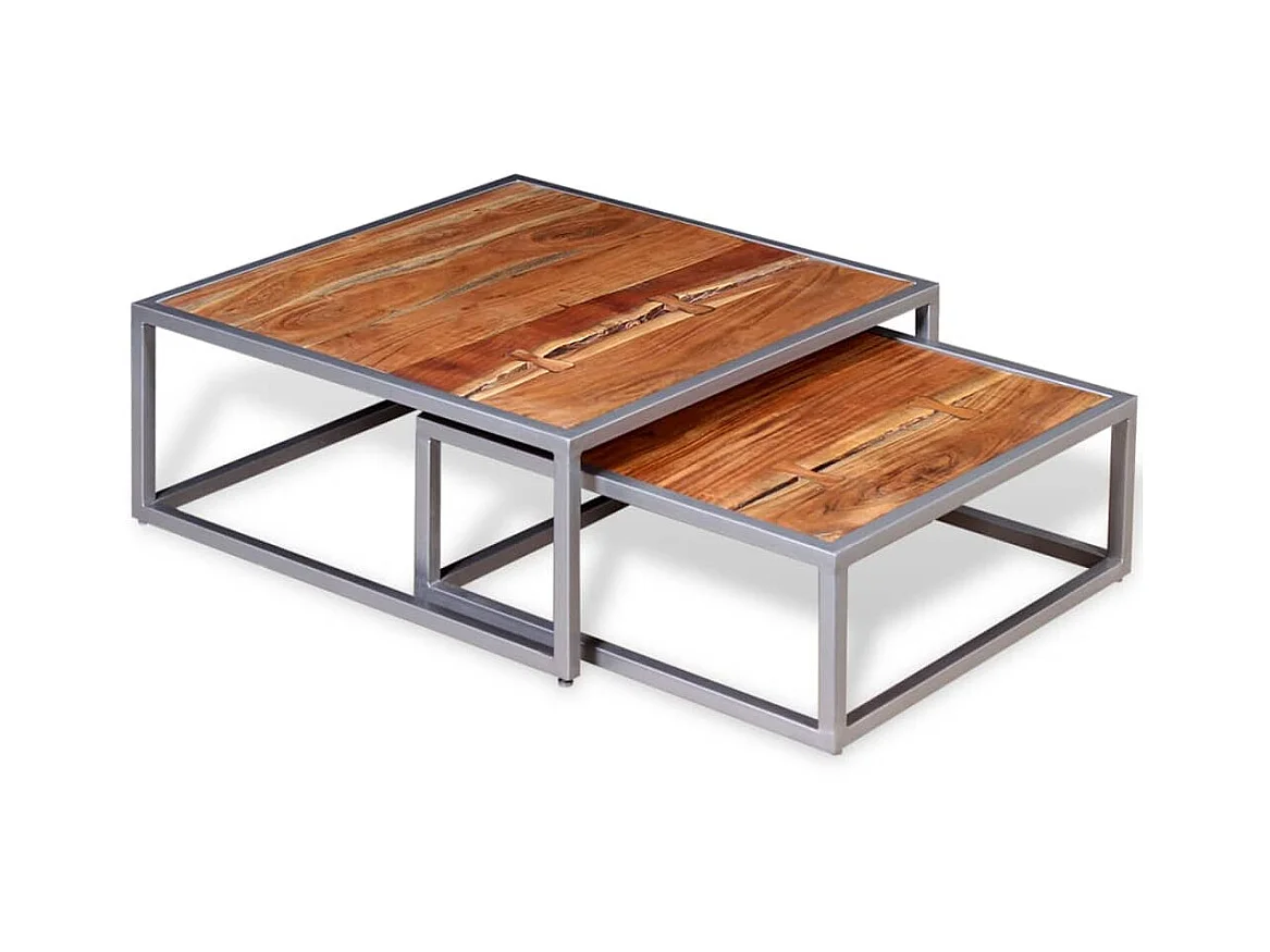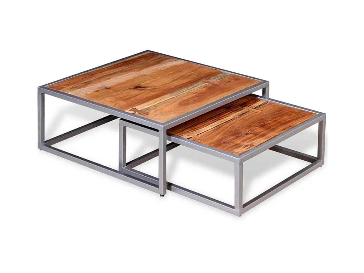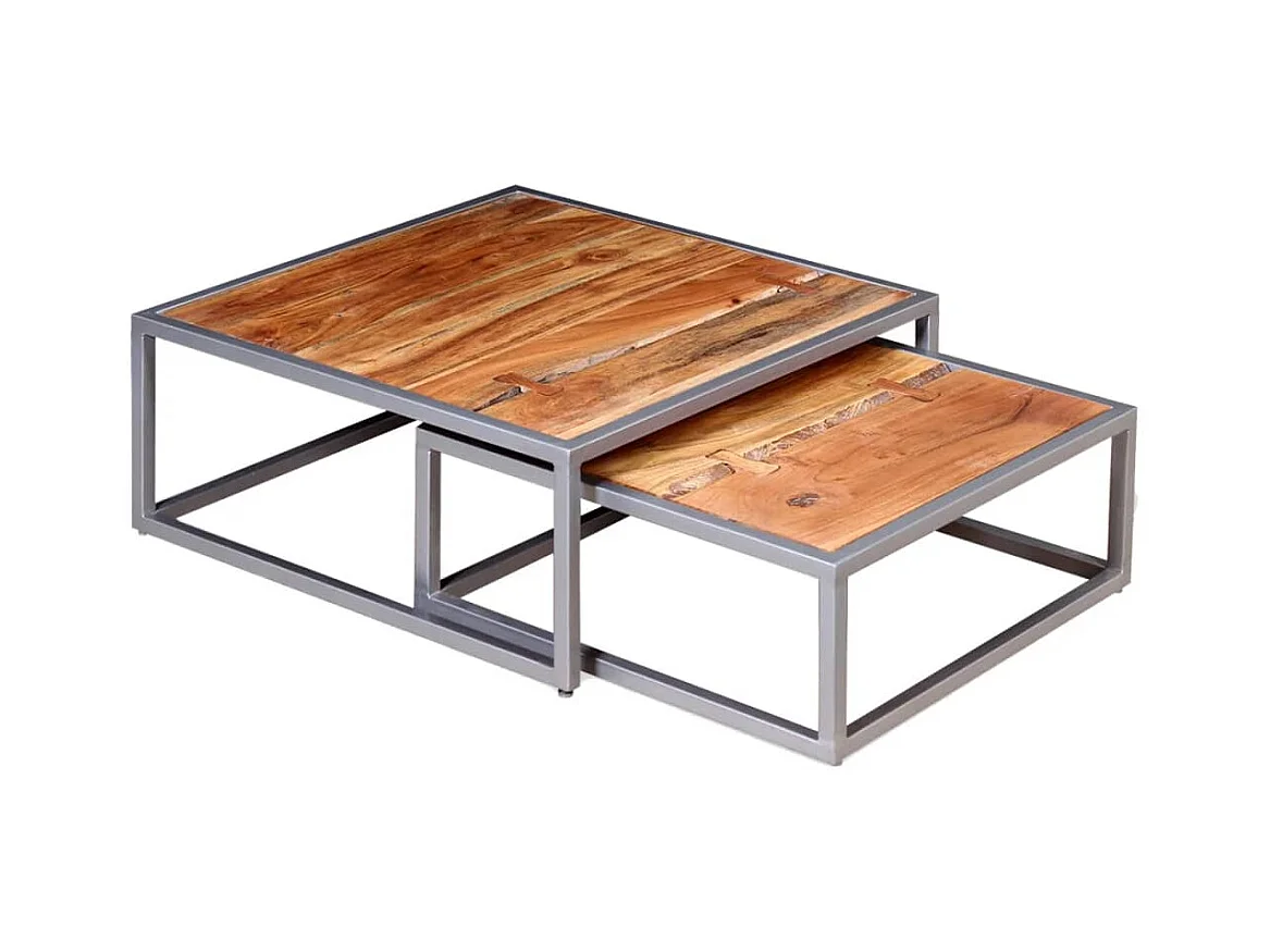 2er-Set Couchtisch,Beistelltisch Akazienholz Massiv -MN99904