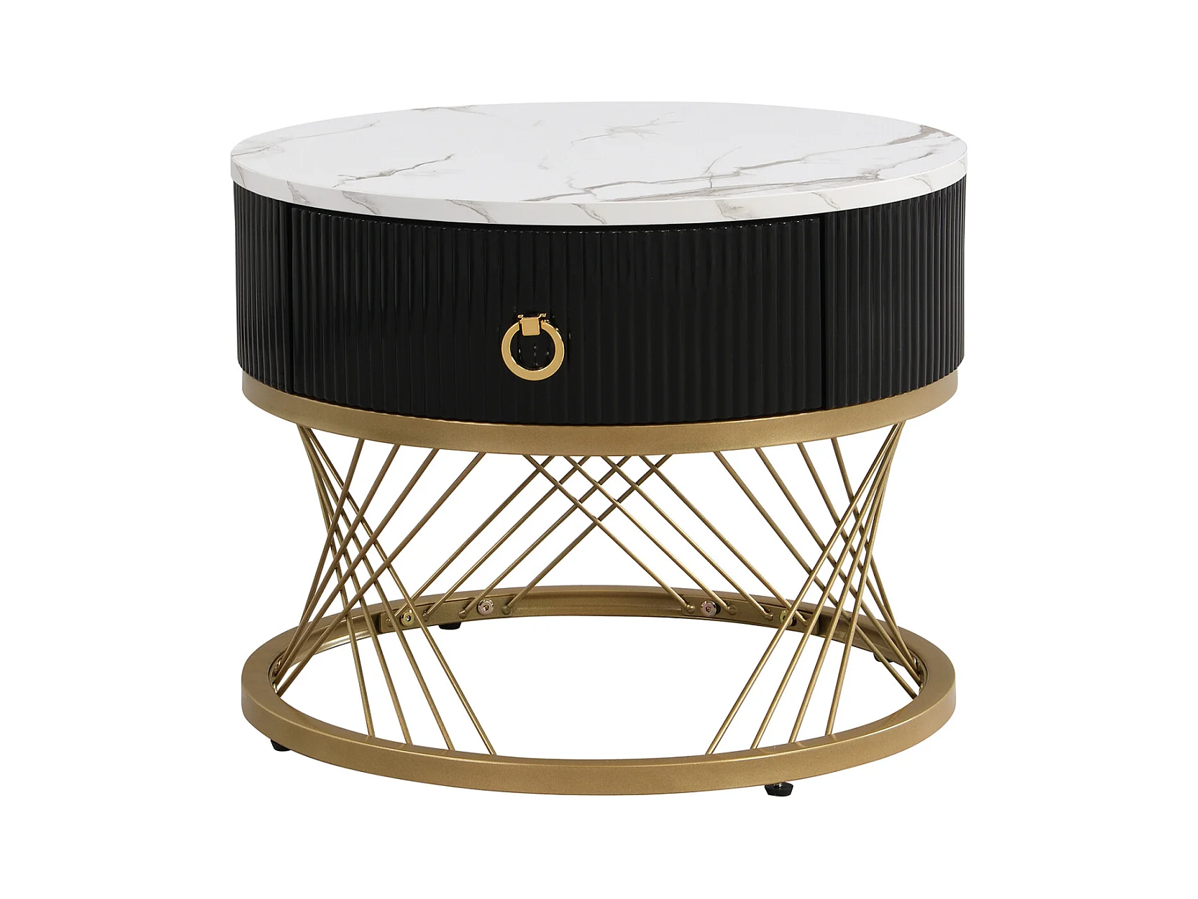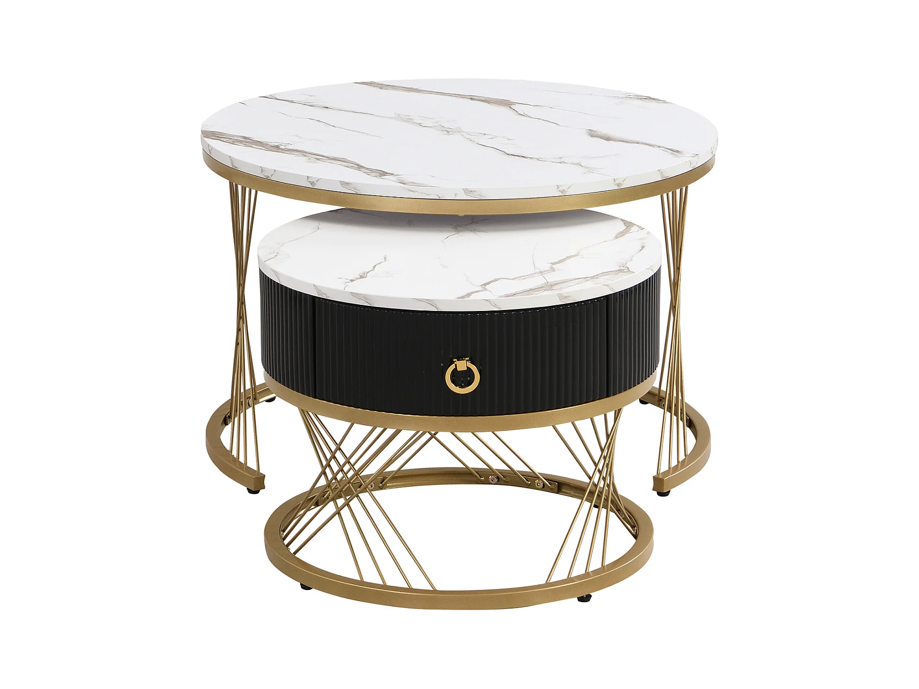 2er Set Couchtische, elegant stapelbar, Beistelltisch mit Dekor in Goldmarmor-Optik mit Schublade, 70x70x45cm+50x50x40cm, weiß