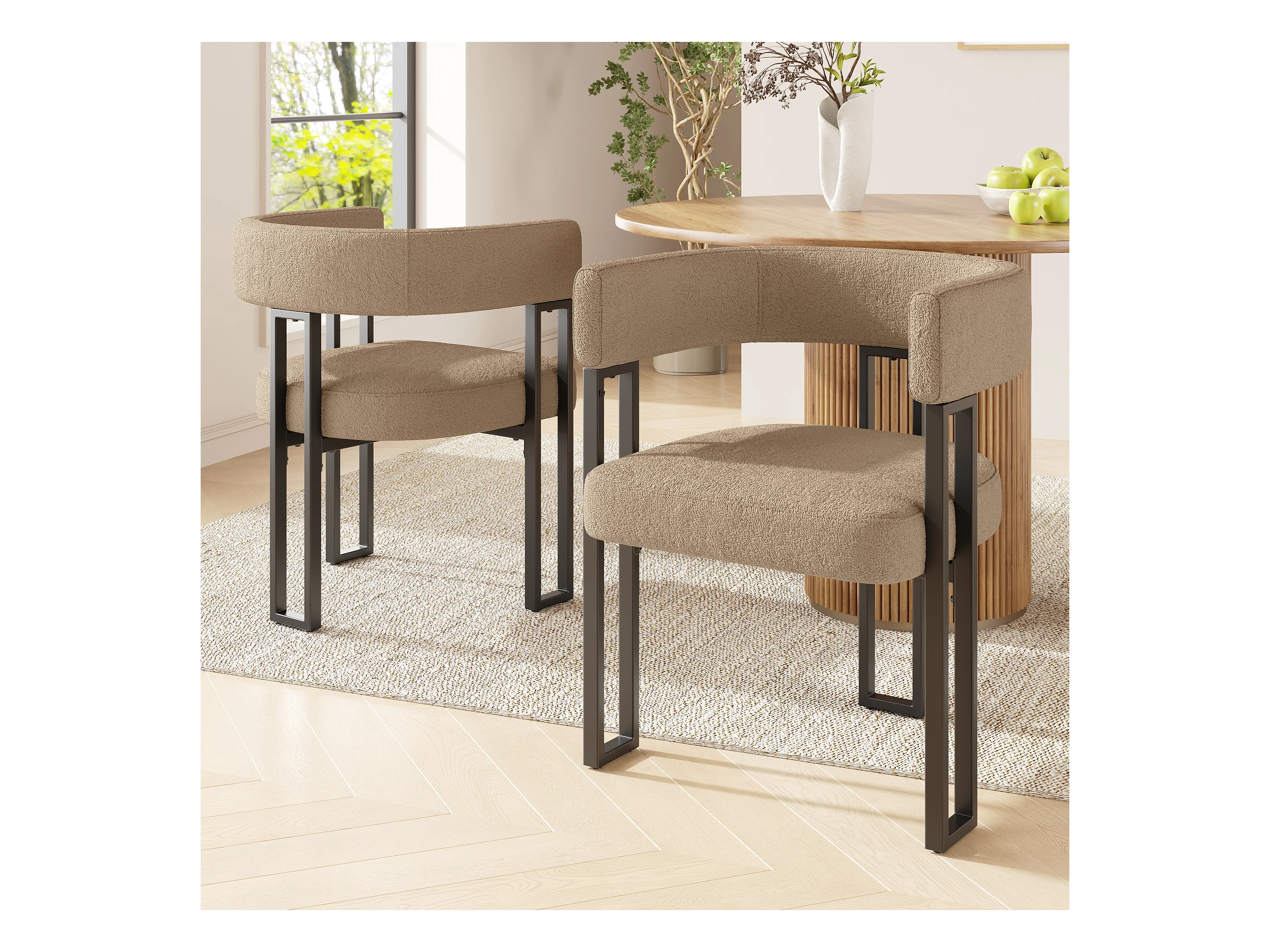 2er-Set Esszimmerstühle - 54 x 51,5 x 72 cm - geschwungene Rückenlehne - Stoff + Metall - braun