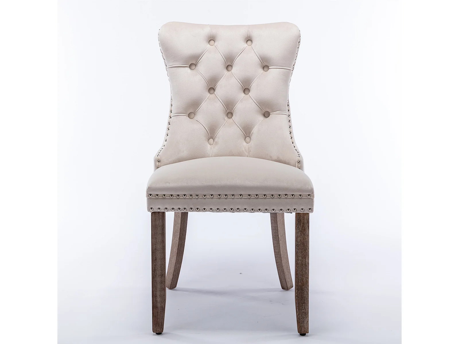 2er-Set Esszimmerstühle aus beigem Samt mit Ziernägeln und gepolsterter Rückenlehne