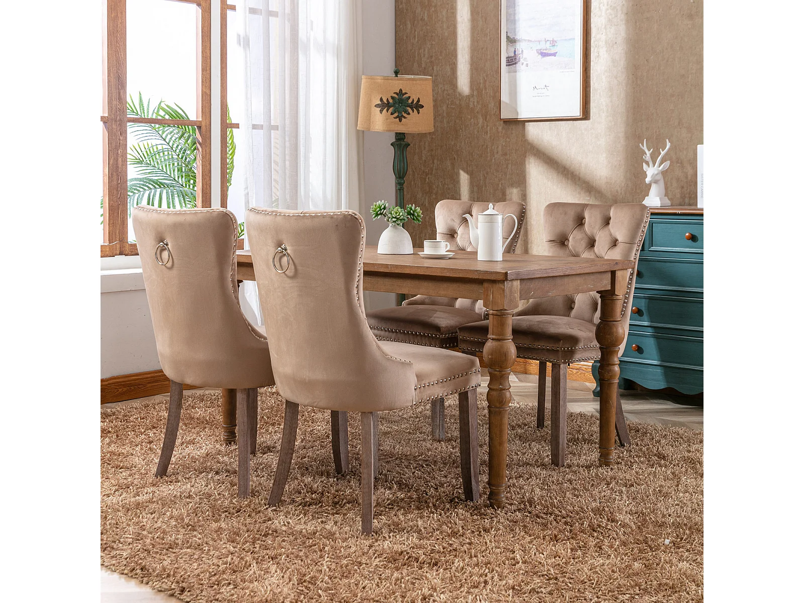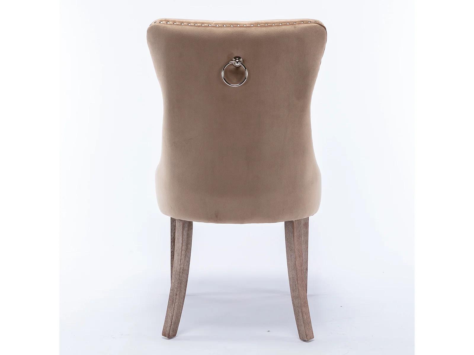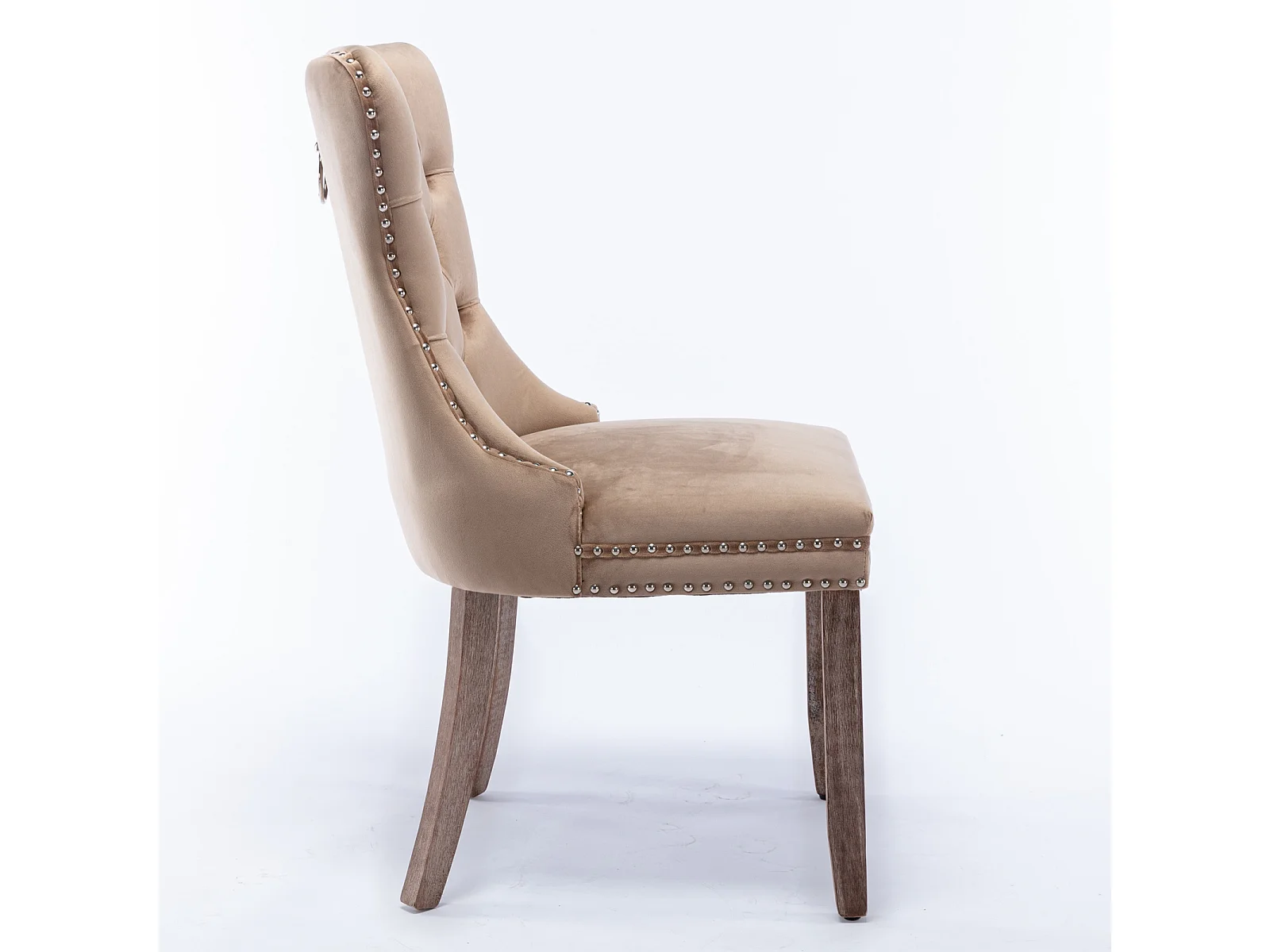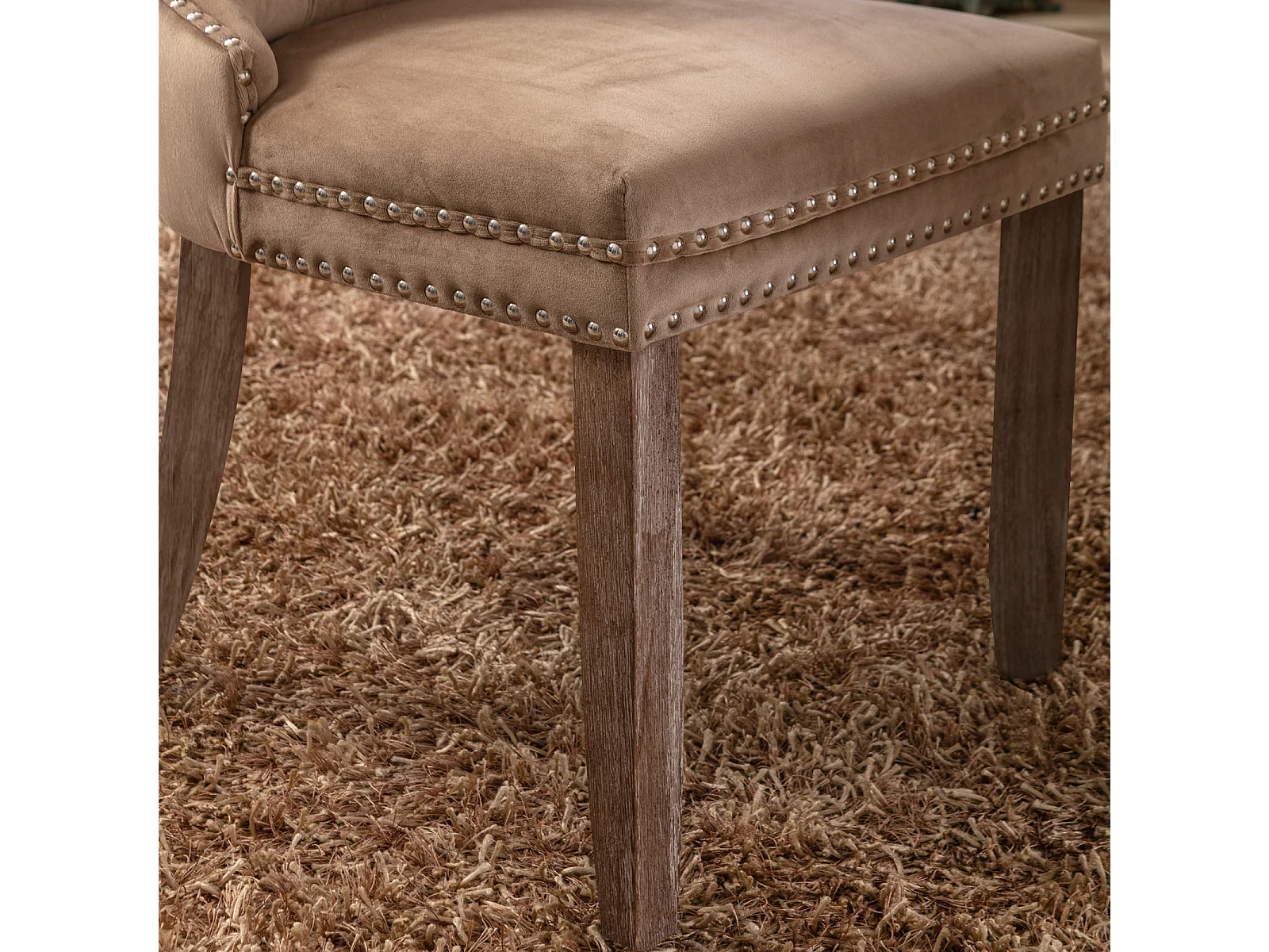 2er-Set Esszimmerstühle aus khakifarbenem Samt mit Ziernägeln und gepolsterter Rückenlehne