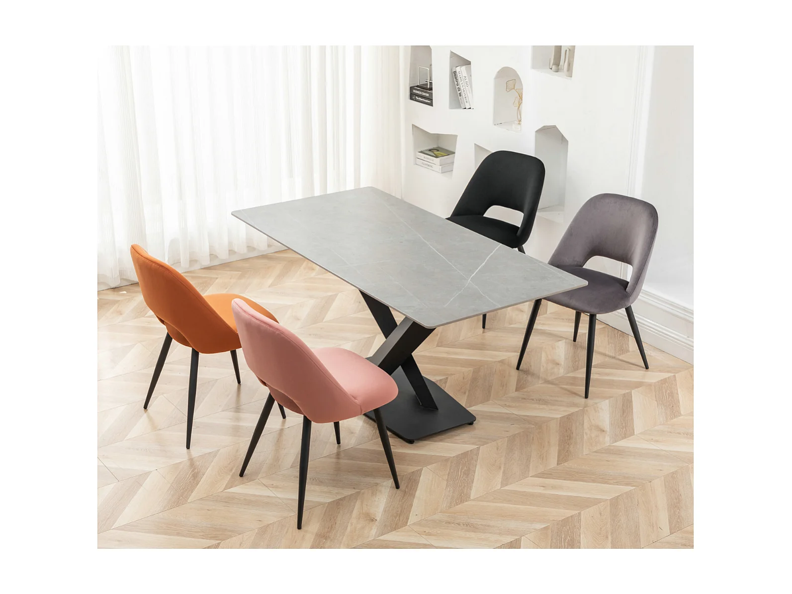 2er-Set Esszimmerstühle aus Stoff mit schwarzem Metallgestell L58 cm - AIMABLE