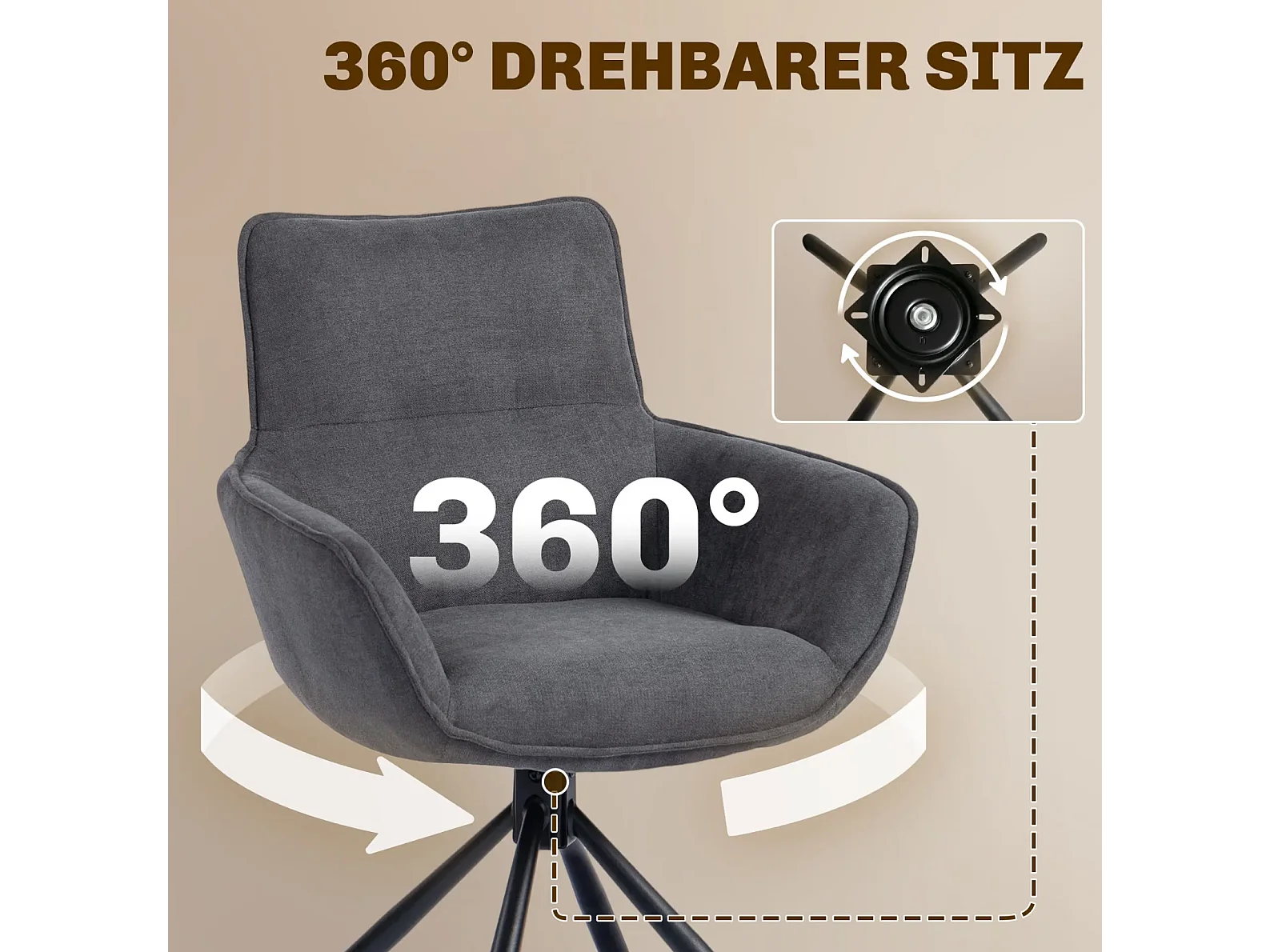 2er-Set Esszimmerstühle, drehbar, weich gepolstert, Armlehnen,Einzelsessel,Wohnzimmer