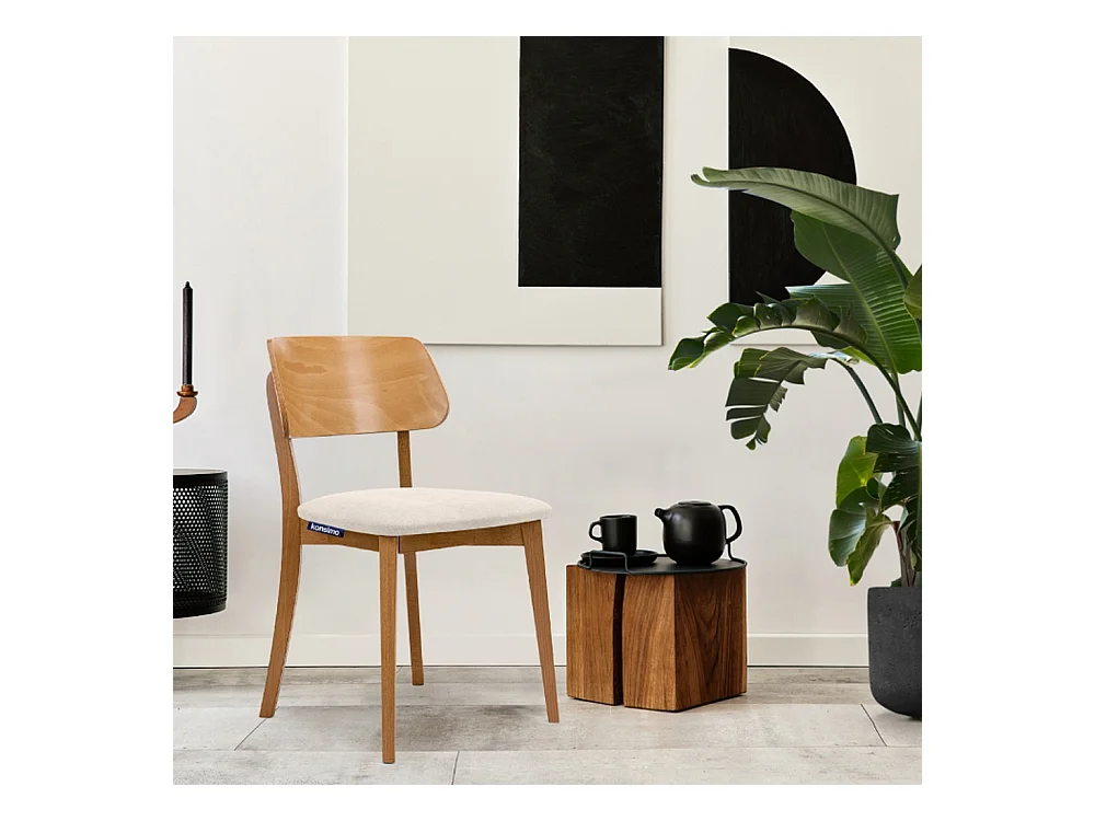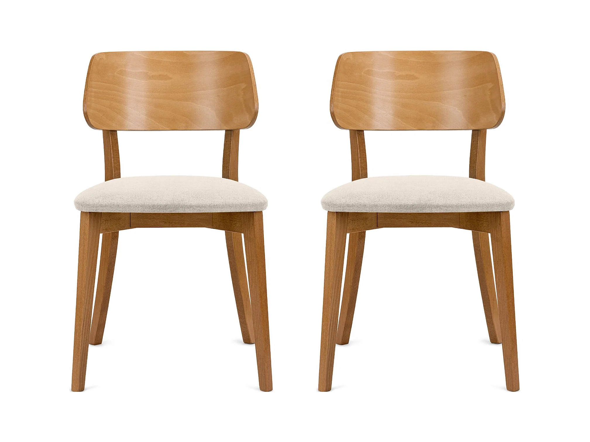 2er Set Esszimmerstühle - Velours-Sitz - Gestell aus Massivholz - Creme - VINIS