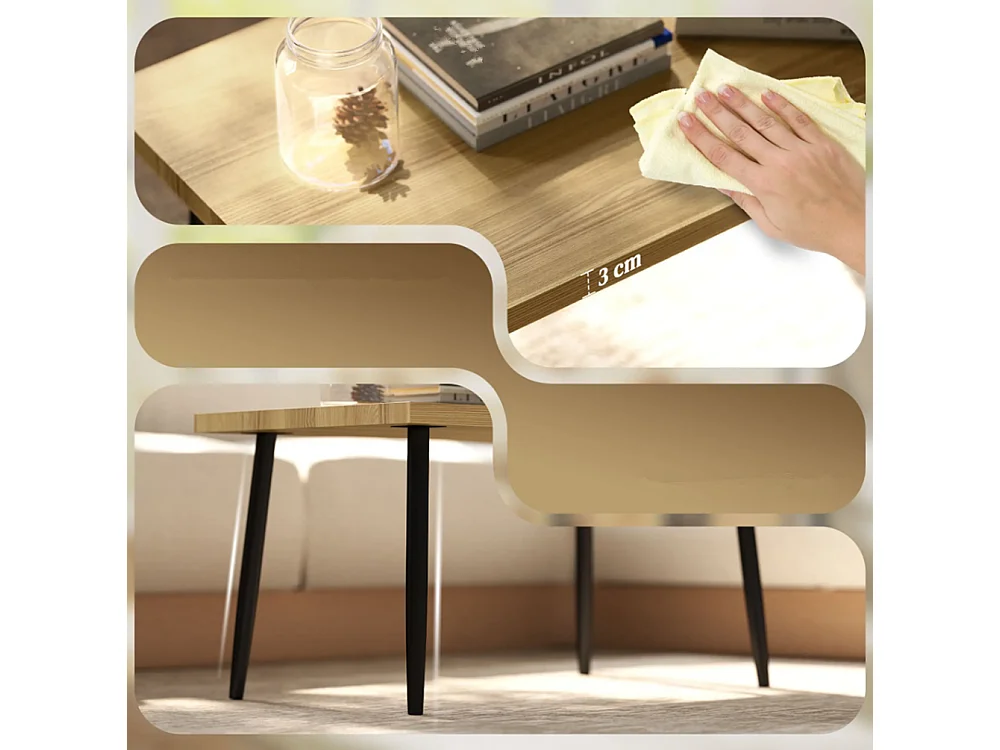 2er-Set Kaffeetische, Großer und kleiner Tisch mit Metallrahmen und Holzplatte, Flexible Kaffeetisch,Sofatisch Wohnzimmertisch
