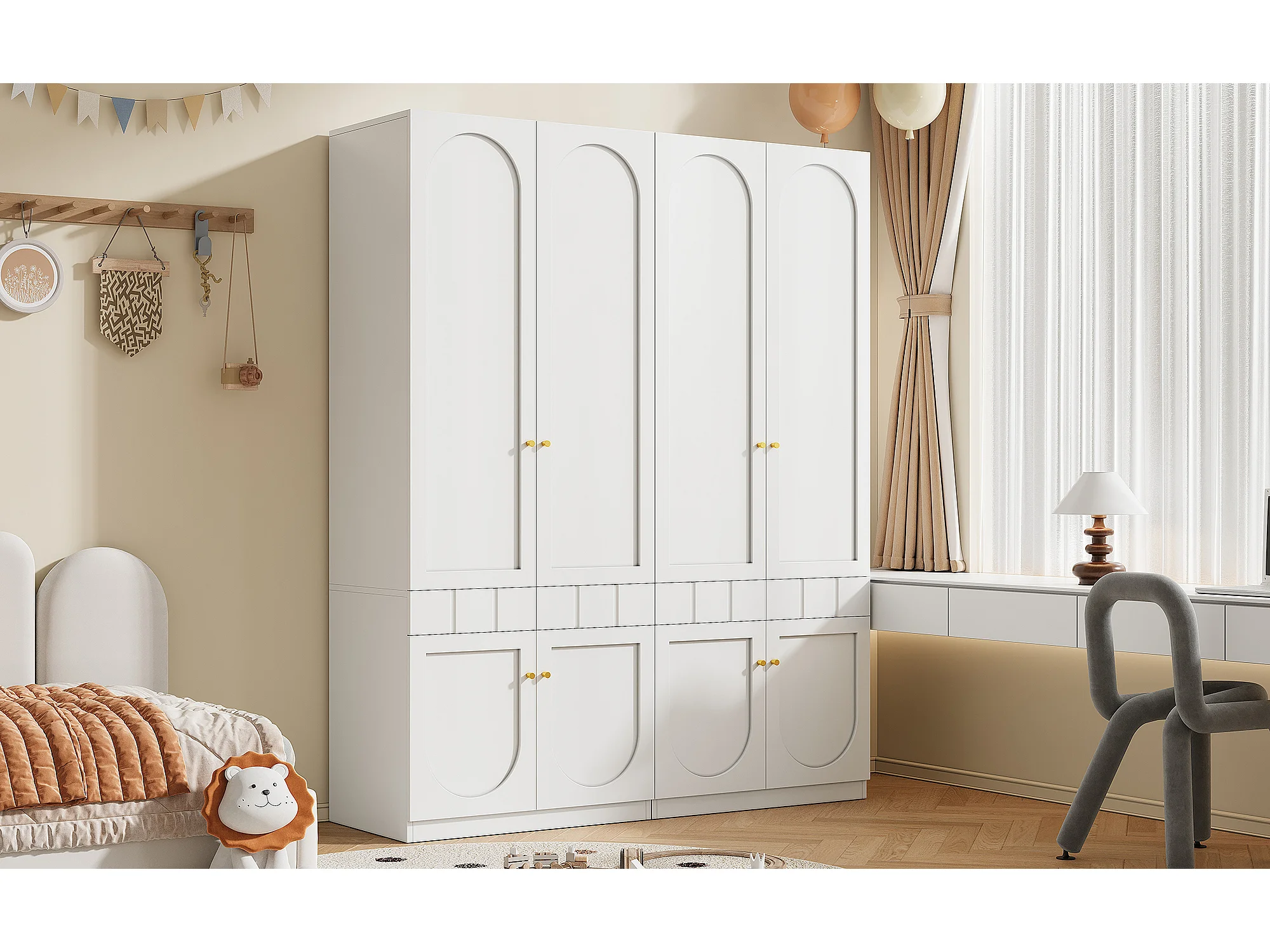 2er-Set Kinderzimmerschränke – 2 x 80 x 50 x 200 cm – mit Kleiderstange und Schubladen – lackiert – MDF – weiß