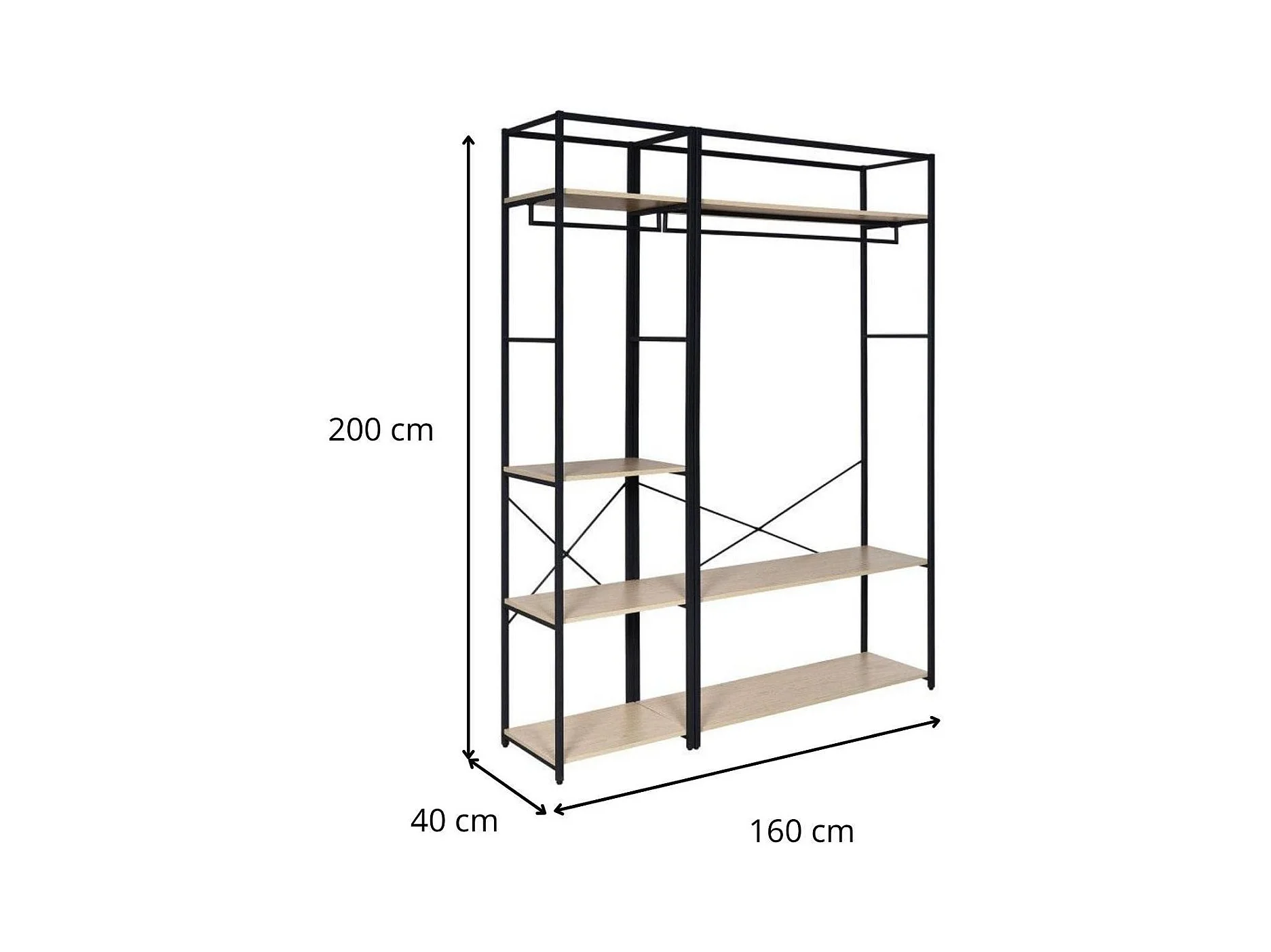 2er-Set Kleiderständer aus Holz und Metall 160x200cm JUNE