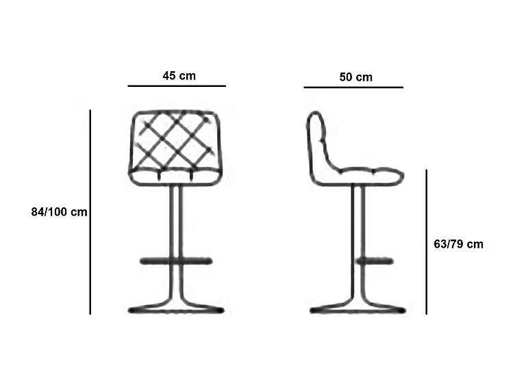 2er-Set moderner Barhocker "Tema" aus dunkelgrauem Stoff, gepolstert mit Fußstütze, 50 x 45 x 84 cm