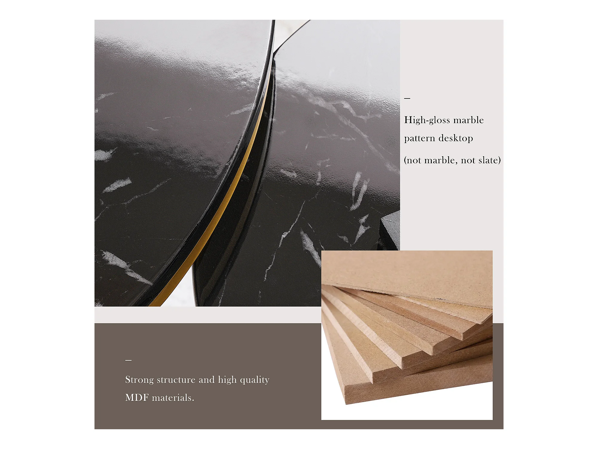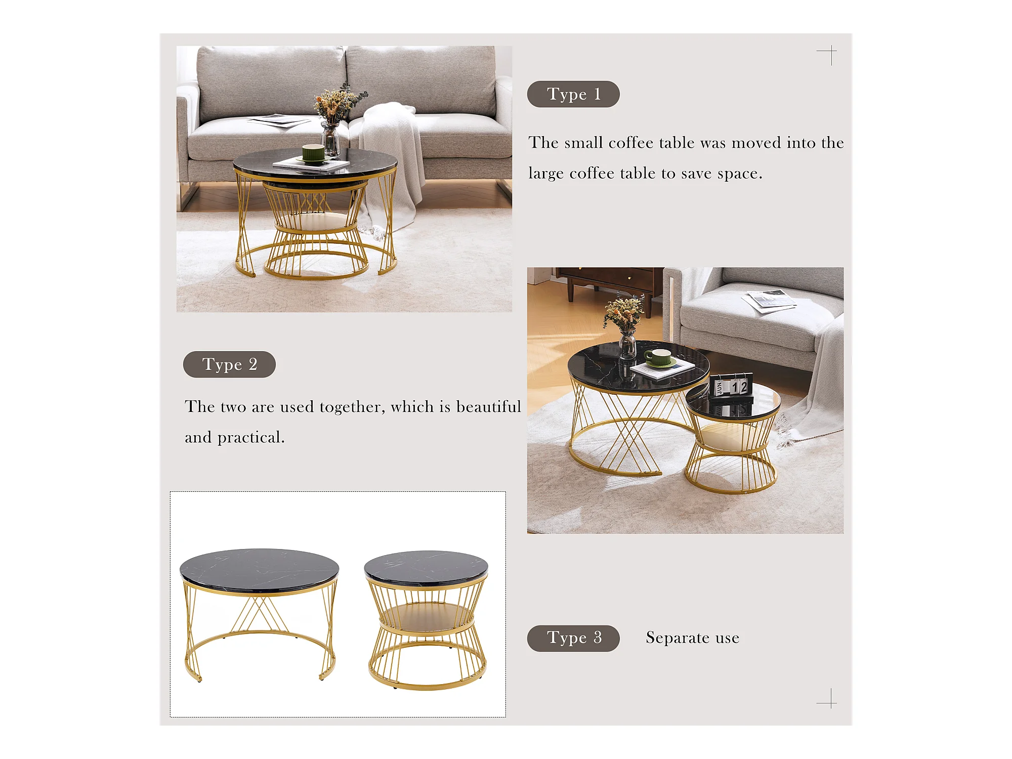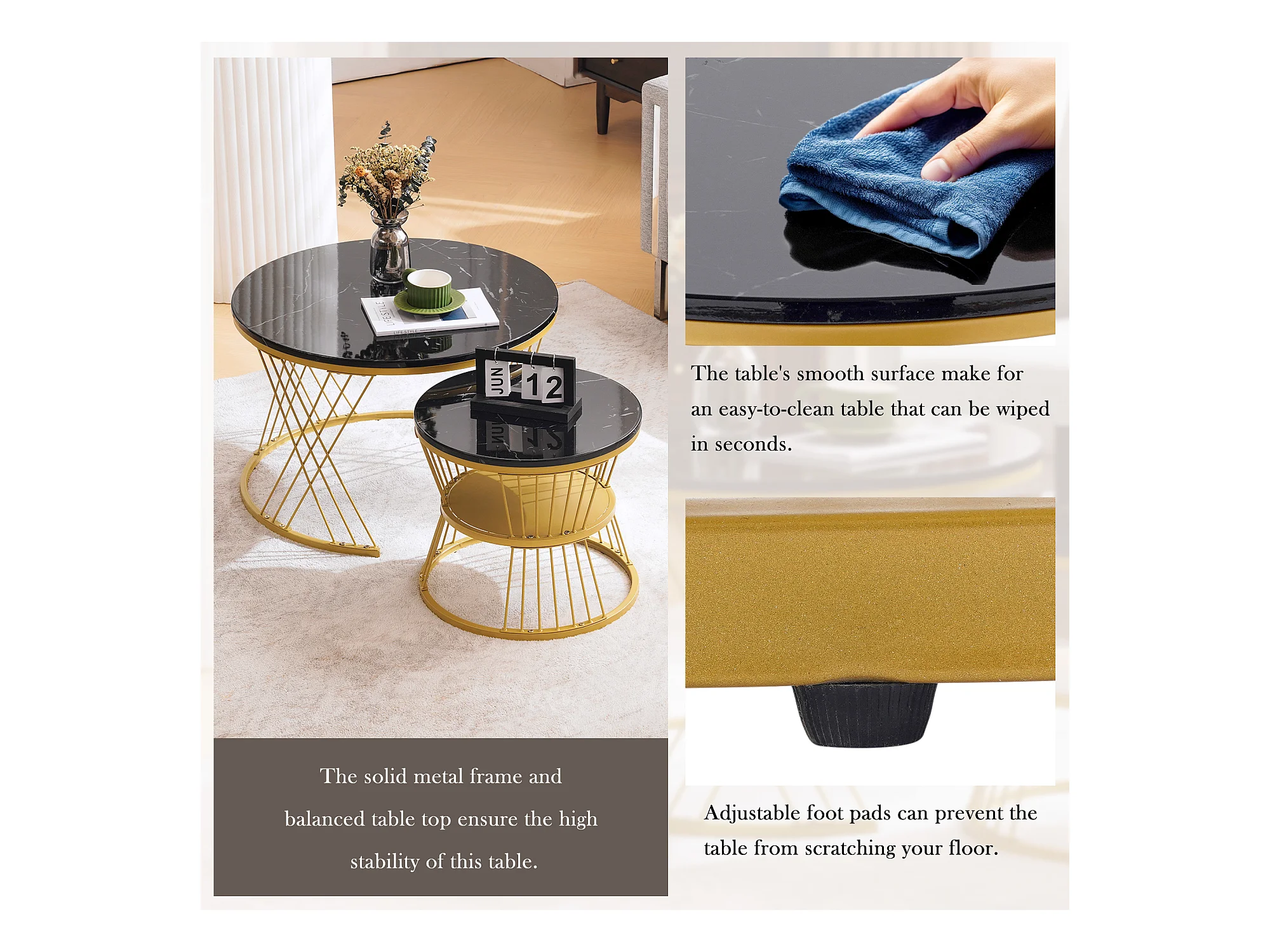 2er-Set, moderner Satz-Couchtisch, Hochglanz-Couchtisch-Set, Sofa-Beistelltische aus Marmorfurnier, runde Beistelltische, 2er-Set, goldfarbener Rahmen