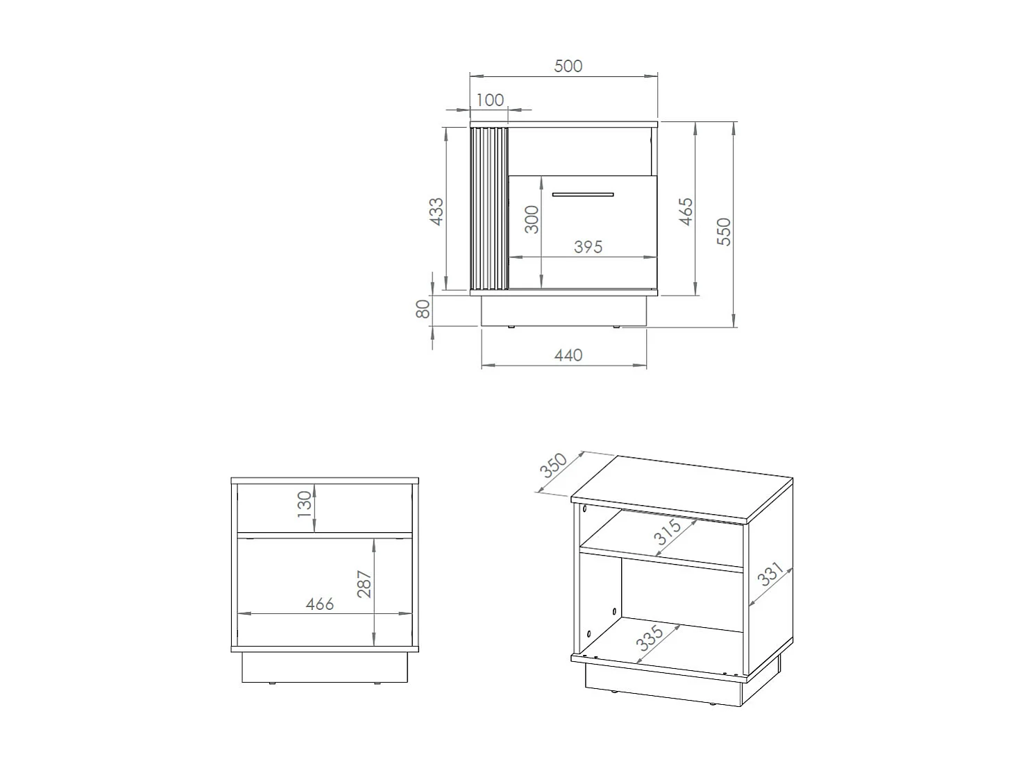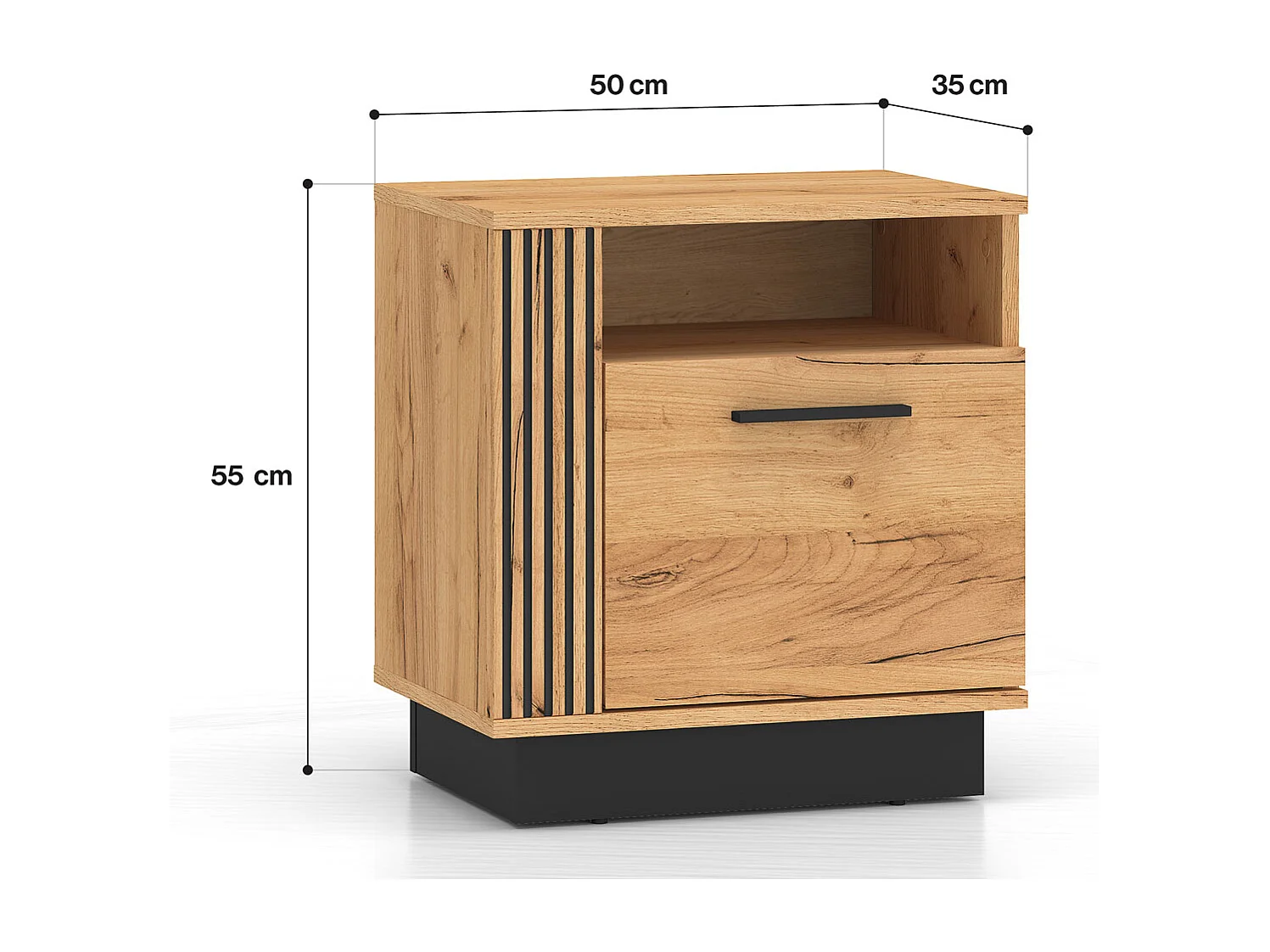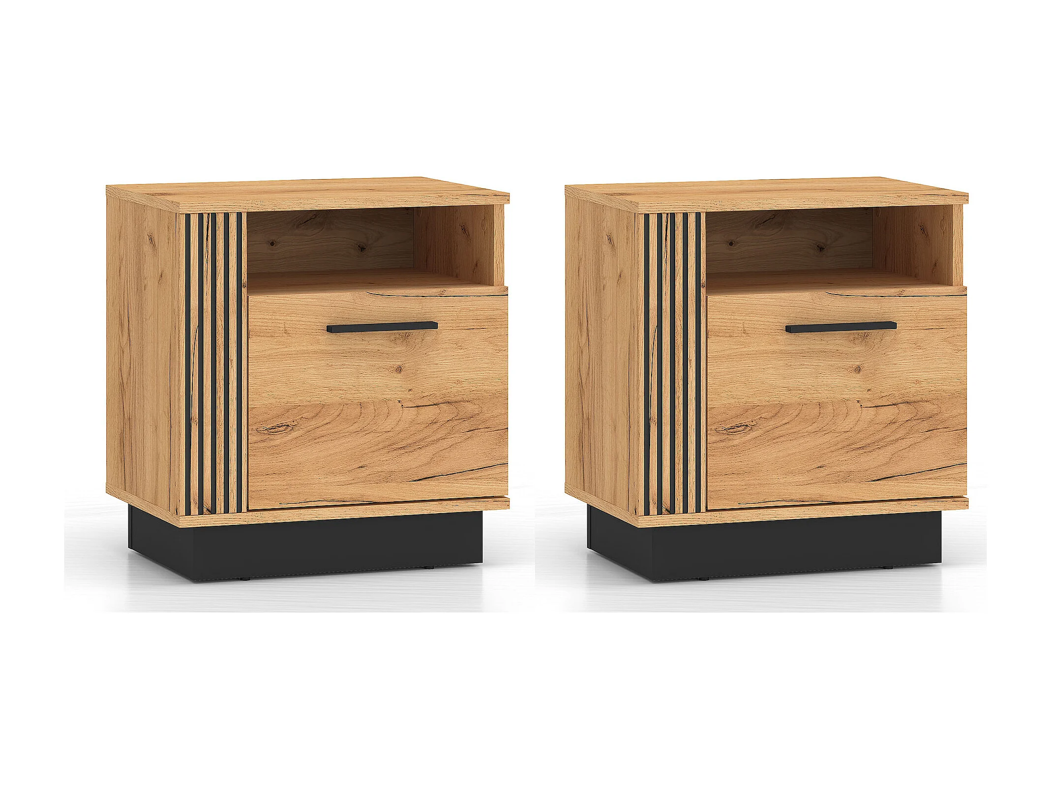 2ER-SET NACHTKONSOLE Urso Gold Craft Eiche / Schwarz je 50 / 35 / 55 cm