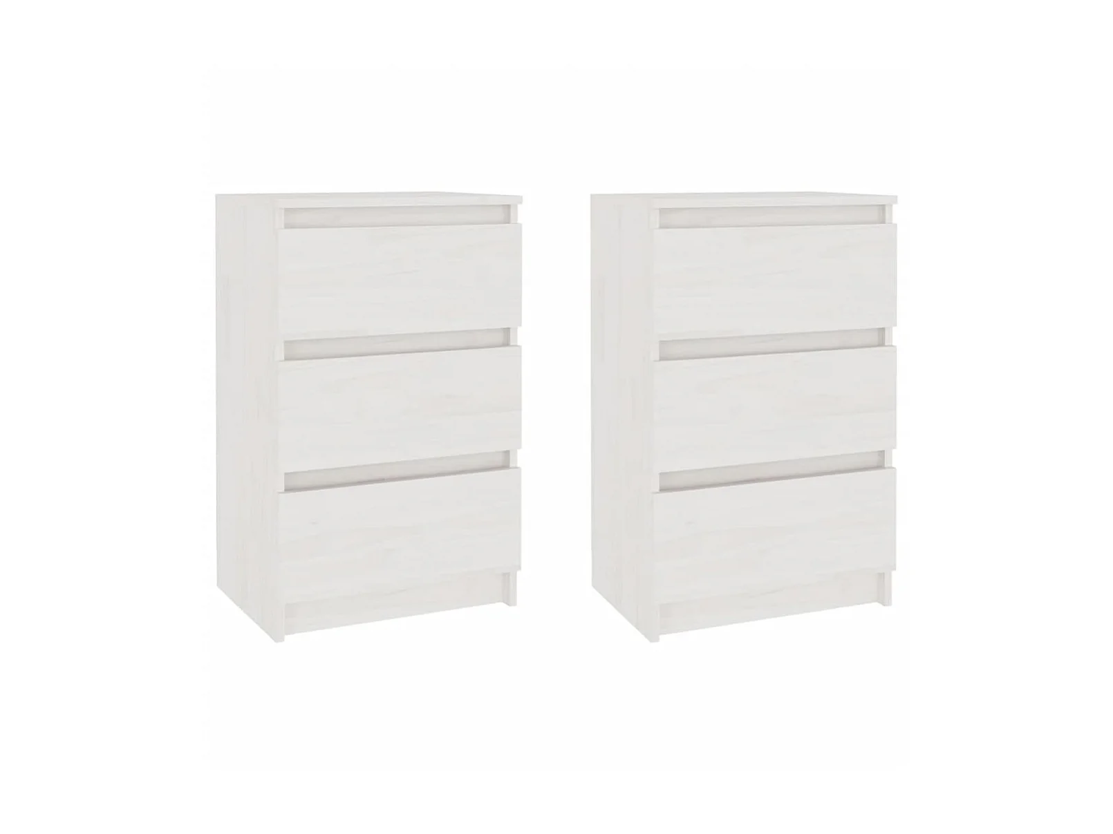 2er-Set Nachtschränke Nachttische Weiß 40x29,5x64 cm Massivholz Kiefer -RN84853