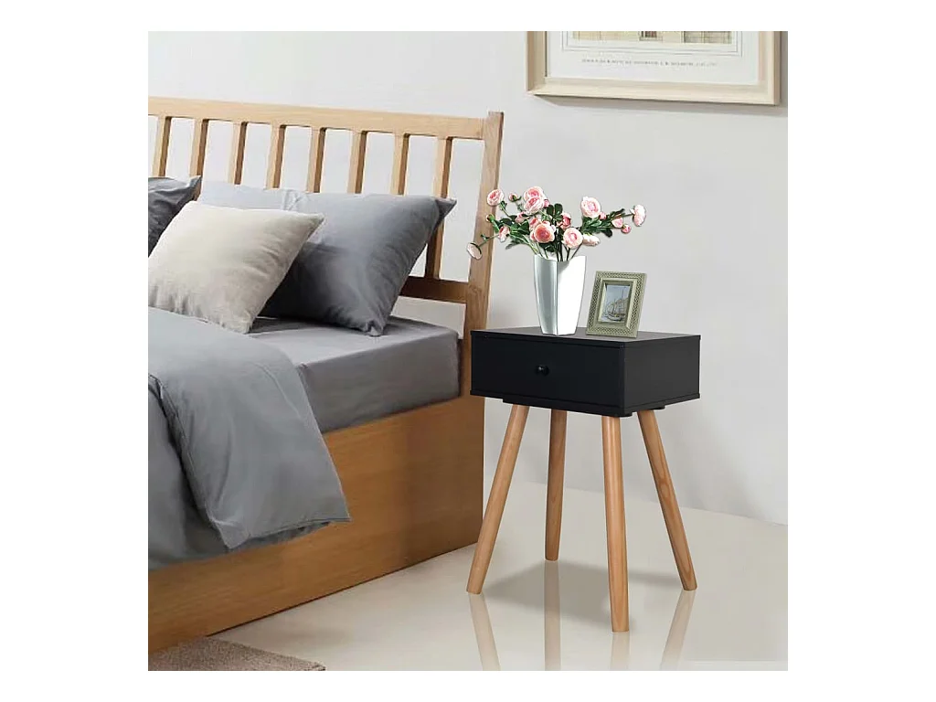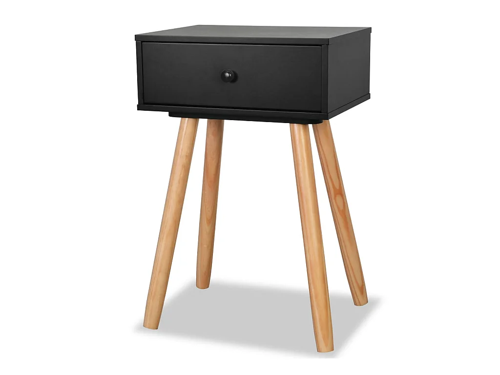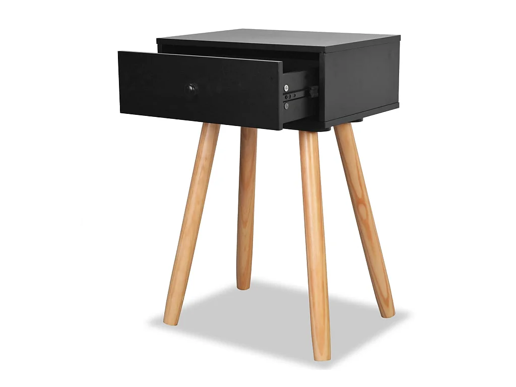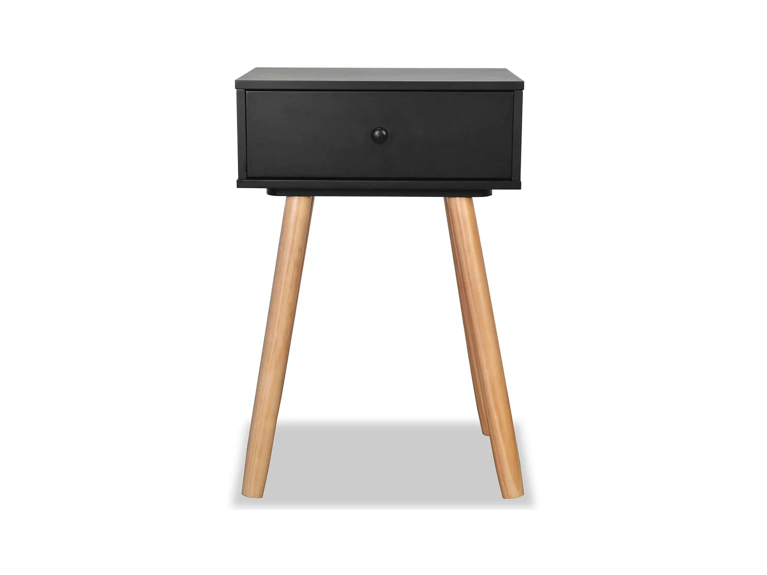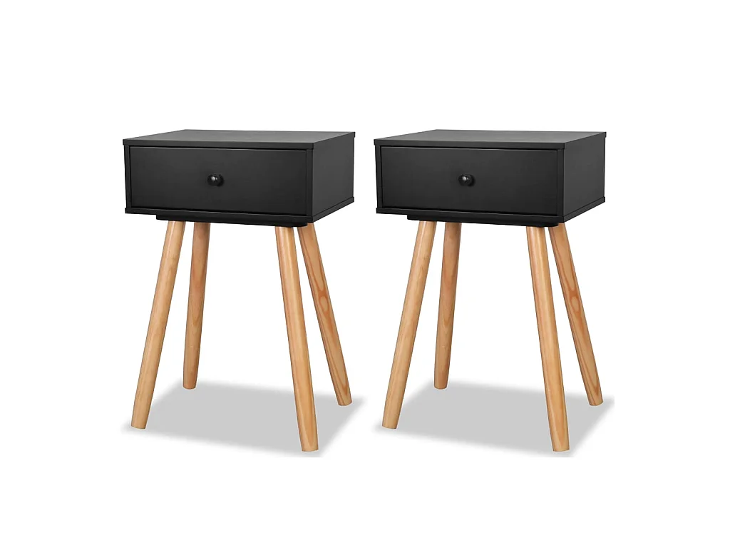 2er-Set Nachttisch Nachtschränke Kiefernholz Massiv 40 x 30 x 61 cm Schwarz -RN53008